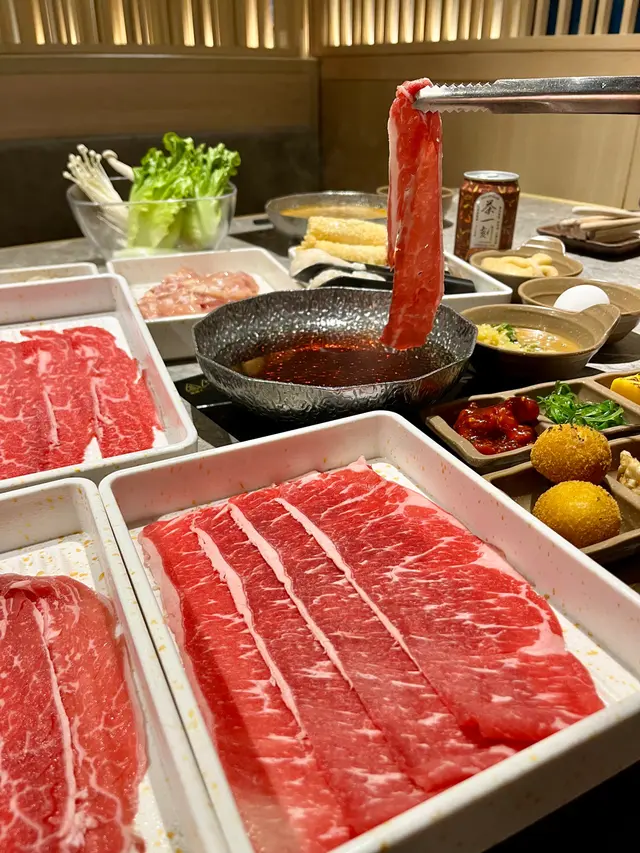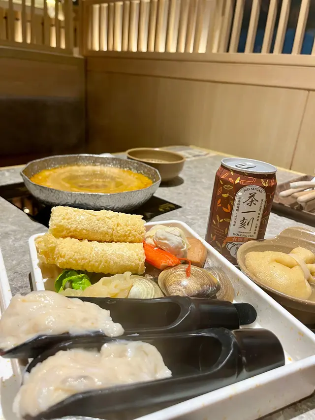 現時「一人一鍋」火鍋放題彷彿愈來愈少,雖然氣氛未必及得上「一枱一鍋」,但對有食物敏感或純素飲食的人而言絕對是一大福音,亦無需遷就個別朋友的特殊需要。全日放題每位成人由$208起分為五款套餐,星期一至四惠顧午市更可享有$40折扣優惠,除了最便宜的兩款限時90分鐘外,其餘三款時限均有120分鐘,我們所選的澳洲和牛牛小排·嚴選和牛胸腹眼套餐每位$368。自助吧提供多款小食及前菜如無骨炸雞、炸餃子、醃漬蘿蔔等,更有關東煮雞蛋、竹輪等。自助食品區有多款配料選擇,包括公仔麵、烏冬、香菇貢丸、芝士豆腐、年糕福袋等。蔬菜款式同樣琳琅滿目,例如京蔥、冬瓜、蓮藕、南瓜、油麥菜等。另有咖啡機、自助汽水機及少量罐裝飲品。除了泡芙、木糠布甸等迷你甜品,更有自助雪糕機、粒粒刨冰機以及自製窩夫機,再淋上朱古力醬、焦糖醬或士多啤梨醬,趣味十足。湯底包括雞白湯湯、花生沙嗲湯、雞白湯、麻辣味噌湯等,另有和風舞茸菇野菌湯及和風羊腩煲兩款新湯底。入座後先送上每人一份賞味頭盤,包括牛舌、牛胸腹眼、鮑魚及廣島蠔各兩隻,澳洲和牛牛小排、和牛胸腹眼、安格斯牛小排、嚴選Prime牛肩肉、一口牛肉粒、滑牛肉、美國牛板腱、麻辣滑牛肉等多款牛類均可任點,當中當然以澳洲和牛牛小排油花最為細緻,牛肉以外則有熊本豬梅花肉、昆布漬雞肉、特選羊肩肉、嚴選伊比利亞五花肉、日本帶子、沙白、海蝦、杭州黑魚片、大蟹棒、水魷魚、蝦滑、花膠、即炸午餐肉、即炸響鈴、雲吞及魚皮餃等。查看更多