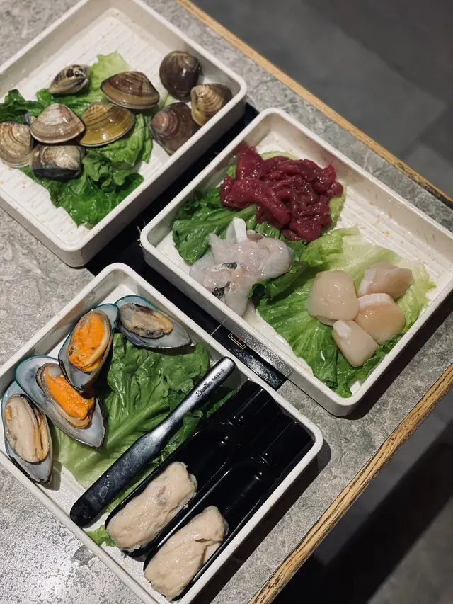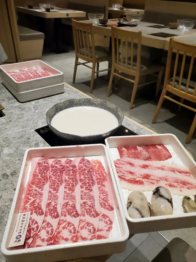位於旺角TOP地庫嘅一間日式任食火鍋店,木系嘅裝潢設計,座位都寬敞環境舒服,日式火鍋一人一鍋,幾好有幾款唔同價錢嘅任食放題比大家選擇,自助區有唔同嘅打邊爐料,熟食,飲品,甜品,仲有得自製窩夫,都幾特別。難得食放題,嗌左個澳洲和牛和小排•和牛胸腹眼 $368,120任飲任食。呢個餐另外會送一碟頭盤,有鮑魚,廣東蠔,牛舌,胸腹眼。個餐可以嗌嘅和牛肉片唔會切得太薄,油花分佈得平均,牛味好香。另外仲有沙白蜆,帶子,蝦呢D海鮮可以無限任叫,海鮮都新鮮,帶子大粒,所以淨食海鮮都可以翻本。查看更多