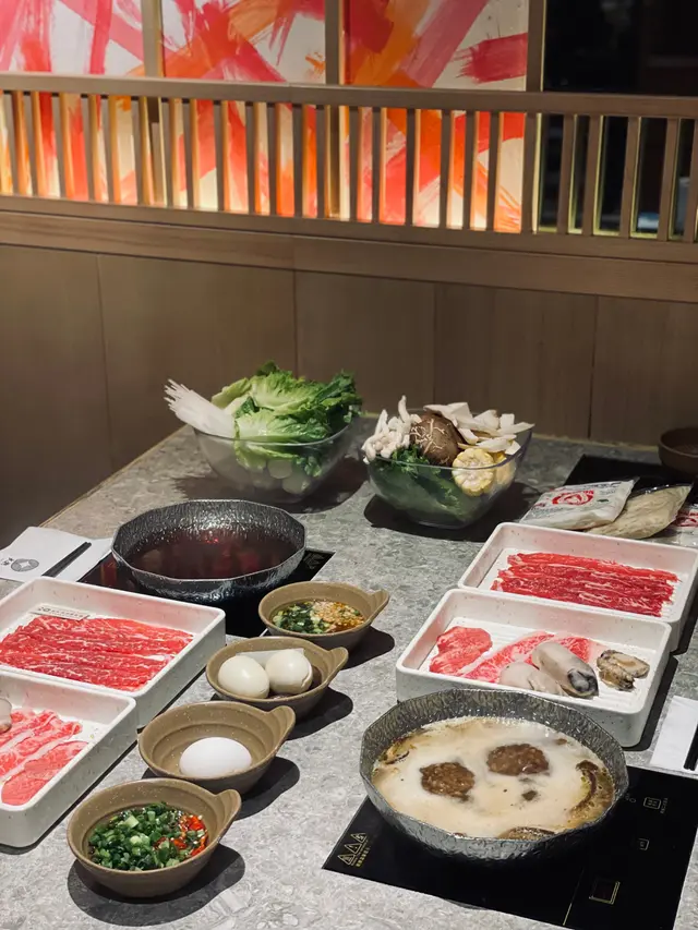 𝕎𝕒𝕝𝕜 𝕒𝕣𝕠𝕦𝕟𝕕 𝕒𝕟𝕕 𝕡𝕚𝕔𝕜 𝕤𝕠𝕞𝕖 𝕗𝕠𝕠𝕕, 𝕕𝕚𝕘𝕖𝕤𝕥 𝕓𝕖𝕗𝕠𝕣𝕖 𝕥𝕙𝕖 𝕟𝕖𝕩𝕥 𝕣𝕠𝕦𝕟𝕕🤭有咩爽過熱辣辣打邊爐迎接夏天👻,來個 $368 澳洲和牛牛小排火鍋放題🍲。一人一鍋最開心,兩個湯底唔怕好似鴛鴦湯咁中途會撈埋左👀,我地揀左和風舞茸菇野菌湯同黃金壽喜燒配日本蛋。野菌湯聞落都好香菇味🍄;而壽喜燒就好清甜😙。🍄‍🟫JP Maitake Mushroom Soup | +$10🥚Golden Sukiyaki Soup | +$10係點配料前,套餐送每人頭盤一碟🏵️,包括鮑魚、廣島蠔🦪、牛舌👅、牛胸腹眼。份量算唔錯架👍🏽,唔洗蘸醬料都幾好食😋。🌟Free of charge: Abalone, Hiroshima Oyster, Ox Tongue, Beef Short Plate跟住就可以用 QR code 點食物👆🏽,主要係肉🐖同海鮮🦑;行出去自助區就有唔同蔬菜🥬、丸🍥、麵🫕、飲品🥤。我就揀左比較多牛🐮:澳洲和牛牛小排、嚴選 Prime 牛肩肉、美國牛板腱、安格斯牛小排,打邊爐正正子☄️;仲有昆布漬雞肉🐓,鮮嫩又滑。🐃Australian Wagyu Short Rib, Prime Beef Chuck Rib, U.S. Oyster Blade, Angus Chuck Flap Tail🐓Chicken with Marinated Kombu Sauce而海鮮就點左:日本帶子、沙白、青口、杭州黑魚片、蝦滑💫,特別鐘意沙白同魚片,大大隻都幾鮮味🤩。🐚JP Scallop, Hard Clam, Mussel🐠Snakehead Fish Slice🦐Minced Shrimp唔好唔記得仲有甜品區😌,可以自製窩夫🤲🏽,原來好難架🧘🏽落漿份量同控制時間,大家有興趣要挑戰下🍡。另外有得自己擠雪糕,不過當時補充中,所以無機會試試🍦。🧇DIY Waffle查看更多