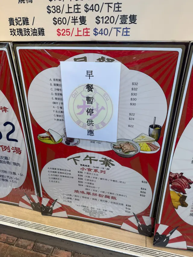 大少燒味茶餐廳 (新康街) (上水) 网址: https://s.openrice.com/QrLS02MiB00 地址: 香港上水新康街74號地舖 电话: +852 24131288