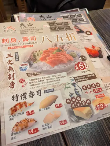 【油尖旺区】【大山日本料理】同两位同事喺旺角闹市揾嘢食,见到呢间日本嘢好似唔错就杀入去。首先食佢哋日本岩手直送嘅串烧,叫咗「盐烧鸡软骨串烧」、「盐烧鸡皮串」、「照烧鸡肾串」、「照烧鸡髀肉串」、「盐烧鸡爽肉串」,各两串都系 $38,系几好食,个人偏爱鸡爽肉嘛。其他我哋仲叫咗 $38 一串「盐烧厚切牛舌串」、$76 两串嘅「三文鱼明太子串」、$25 一串嘅「明太子鸡肉串」,仲有 $78 嘅「铁板牛油带子」,烧嘅嘢其实都 okay 好食,正常以上啰。当日特价 $68 嘅「珍宝牛肉寿喜烧」都有叫,性价比几高,値得叫嘅。生冷嘢就叫咗 $158 嘅「寿司拼盘(花)」、$9 一件嘅「北海道带子寿司」同限量特价 $68 嘅「三文鱼刺身十切」两次,味道正正常常冇乜特别,价钱还可以。不过系 $872 嘅价钱变咗 $100 嘅「服务费」出嚟,令到埋单价变成 $972 𠮶度以为喺欧美国家啫。。。(地址:旺角西洋菜南街2W-2X号2楼)#1amfoodie #foodie #hkfoodie #thatfoodiething #hkfood #food #instafood #yummy #foodlover #delicious #foodies #tasty #globaleats #tastyfood #dessert #foodpics #followforfollowback #love #eat #1am油尖旺区 #旺角 #旺角东 #大山日本料理 #盐烧鸡软骨串烧 #盐烧鸡皮串 #照烧鸡肾串 #照烧鸡髀肉串 #盐烧鸡爽肉串 #盐烧厚切牛舌串 #三文鱼明太子串 #明太子鸡肉串 #铁板牛油带子 #寿司拼盘 #北海道带子寿司 #珍宝牛肉寿喜烧 #三文鱼刺身 #服务费 #1am1836 #1ambackup…Read More