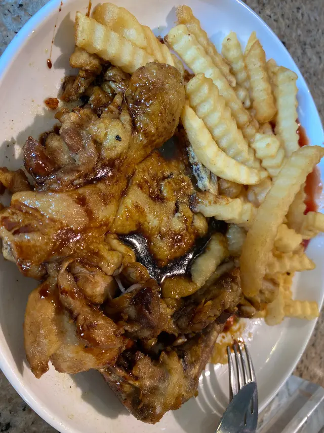 呢間店食過好多次。一班車友好鍾意去聚 ,因為有免費泊車,又唔多人。特別係電單車友,三五成群去的。又有露天同室內。入到去好似好舊,有啲茶餐廳feel.我就通常都叫雞髀薯條。波浪薯條,即炸,基本上都無得輸,拎上枱仲熱辣辣所以係好食雞脾配秘製汁,又幾夾喎。汁甜甜哋,有啲似甜豉油。雞髀滑,好大隻,仲會起骨,好方便。但如果想食脆博博嘅雞皮,就無啦,不過當佢係炸過即滷脾,咁呢個會特別啲。個人比較鍾意食炸到雞皮脆嘅炸雞髀。 一個餐都要成八十元。其實唔平。但係唔洗同人迫查看更多