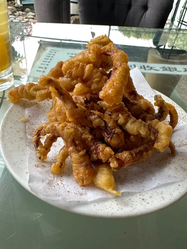 搬咗入錦田之後有時都會去上村搵食因為餐廳比較集中哩間大山茶座因為個名好有氣勢又有戶外座一直都好想試星期一午後老闆娘話經過週末眾多單車友嘅「洗劫」我想食嘅港式漢堡包已經賣晒咁就試下鹹牛炒蛋多士由收錢煮嘢食到執枱都係得老闆娘一腳踢好勵害👏🏻烘底新鮮熱辣好味道達薯條都比我哋清埋倉本想叫兩份老闆娘話得一份大嘅比埋我哋😂另外由佢拍板炸左份燒賣話好好食喎咁又真係無呃人啊外脆內淋但我覺得最好味嘅係辣雞髀係有辣椒粒嘅豉油帶點印尼風味雖然佢「碎上」個賣相又幾好笑總括嚟講食物係好味超友善服務都大大加分😛但環境就似大排檔咁啦查看更多