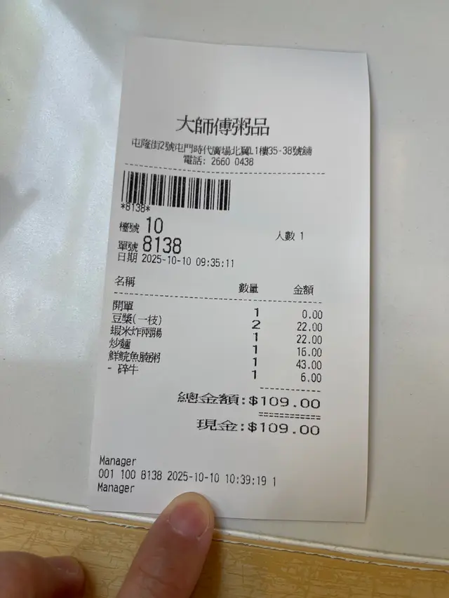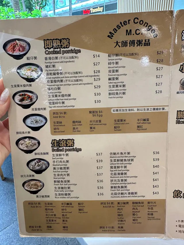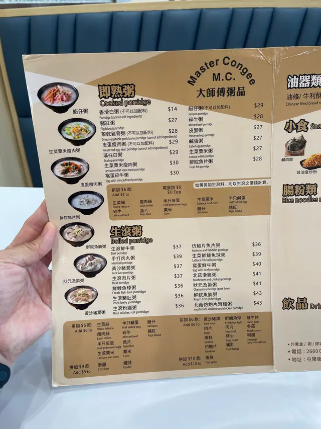 大師傅粥品 (屯門時代廣場北翼) (屯门) 网址: https://s.openrice.com/QrLS0zrO6W0 地址: 香港屯門屯隆街2號屯門時代廣場北翼L1樓35-38號舖 电话: +852 26600438