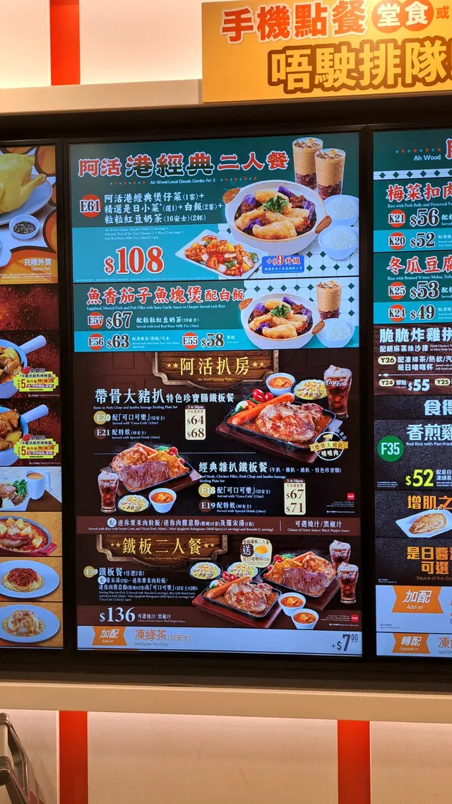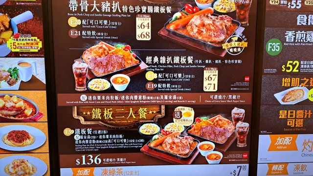 大前日(3-8-2025 Sun)傍晚,同老公做完家務後煮飯,佢係咁話天氣熱,做完家務重要煮,好辛苦,不如落去涼住冷氣食 唔使煮又唔使洗。唉!俾佢贏啦,咁食邊間?一樂?佢話大快活鐵板餐,咁走嚟睇吓吸唔吸引先。睇吓menu,鐵板餐係$64.00起,亦有$136.00嘅二人餐,研究咗,原來二人餐同咗兩杯啫喱,咁決定要二人餐。買完飛,等咗幾分鐘,聽到嗌我哋no.,老公就去攞,分咗3個盤,我哋要雜扒(牛扒,雞扒,豬扒同珍寶腸),帶骨大豬扒&珍寶腸,燒汁,黑椒汁,迷你肉醬意粉,迷你粟米肉粒飯,羅宋湯同可樂。我哋自己落汁,鐵板唔係太熱,一啲煙都冇,不過都啱嘅,安全啲嘛。首先飲啖羅宋湯,有好多菜,味道唔濃亦唔會好辣,ok嘅。珍寶腸嘅?口感係腍到近乎霉,唔掂。牛扒係平嘢冇牛味就一定;雞扒juicy;雜扒中嘅豬扒又薄又柴皮;帶骨大豬扒就厚啲同唔柴;黑椒汁唔辣;燒汁味道普通。迷你粟米肉粒飯呢?睇見肉粒已經乾,食落,白汁唔夠,粟米粒唔甜,肉粒更加係乾柴,有啲難哽,老公就加自己攞嘅火鍋湯同豉油食,就好好多。迷你肉醬意粉,明顯呢個味道同口感對版。最後嘅啫喱,打開睇見到有淡奶,舀起睇係黃色嘅,一食,原來係檸檬味,味道有啲假。其實食完啲肉都夠飽,唔須要再有澱粉質,建議可降低價錢而選擇加配,重可以加配一碟菜。每人幾十蚊食到叫做鐵板餐,都唔可以要求太高。題外話:我哋食食下嘅時候,見到有個坐輪椅嘅叔叔自己搵位,佢喺我哋右邊張二人枱推開張凳,但唔會推得遠,我老公就起身幫佢將張凳拉去第二喥,其實喺呢個時候,我哋左邊張枱有個戴眼鏡嘅中年女職員企喺喥,同兩個熟客傾𡁵計 ,亦面向我哋右邊,佢就算見唔到個輪椅叔叔要移開張凳,都應該睇到我老公走去將張凳移去第二喥,佢都可以唔幫手接力。之後我只見佢幫客人捧過兩次餐,其中一次就係幫佢嘅熟客,之後全程唔見佢,但有個戴眼鏡嘅後生仔就好勤力同有禮,又捧餐又執嘢幾次,重喺個輪椅叔叔食完走之後,將張凳移返過嚟。上次食評係2025年7月18日提交嘅呢篇:https://www.openrice.com/zh/hongkong/review/b-%E4%B8%80%E9%96%8B%E4%BA%8C-e6128420…查看更多