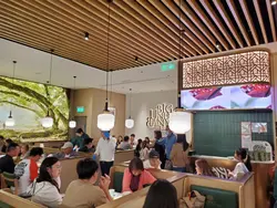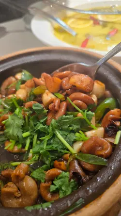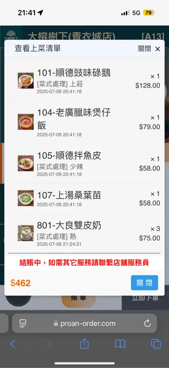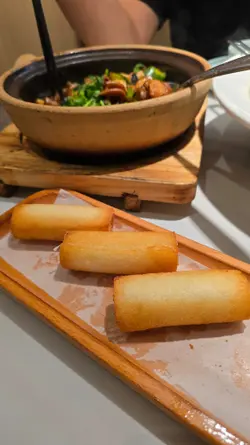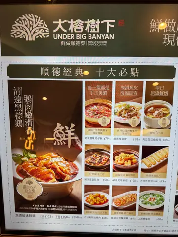 这里不是传统酒楼,而是顺德菜迈向全球的第一步!作为香港首店,大榕树下以「鲜做」为名,不少人慕名而来,希望一尝顺德菜的「头啖汤」。与一般中菜餐厅不同,大榕树下的装潢非常有心,让食客置身于「大榕树下」,舌尖未动先坠入岭南风情。既然餐厅主打顺德菜,第一次食一定要点一些最热门的菜式,品尝一下。🦢 1. 顺德豉味碌鹅(上庄)顺德古法生碌方法,将鹅身浸透,豉香如铠甲镀满鹅皮。鹅肉上庄肉质纤维分明,入口却嫩似豆腐,精粹之处在于餐厅调制的酱汁,将鹅肉带出更甜香。🍚 2. 老广腊味煲仔饭陶煲上桌时白烟蒸腾,侍应淋酱刹那「炸炸声」炸响!揭盖瞬间,腊味香味非常香浓,锅底够热烤香饭焦。腊味脂香配上金黄饭焦。蘸流心蛋黄同食,脆硬与绵滑在齿间厮杀。彩蛋:锅底暗藏番薯块,吸饱肉汁甜如蜜饯!🐟 3. 顺德拌鱼皮师傅以冰镇拌鱼皮的方式来激活胶原蛋白,再拌入椒丝、秘制酱汁等,非常开胃。🌿 4. 上汤桑叶苗香港极少见的桑芽嫩叶,桑叶苗嚼感似嫩菠菜混紫苏香,微苦回甘,绝对推荐。🥛 5. 大良双皮奶最后,顺德最出名的甜品-大良双皮奶。青衣城的大榕树下作为香港第一分店,眼见真的吸引了不少其他地区的人特意过来,看来在香港开展其他分店是指日可待。…查看更多