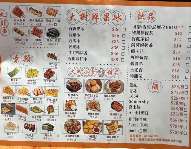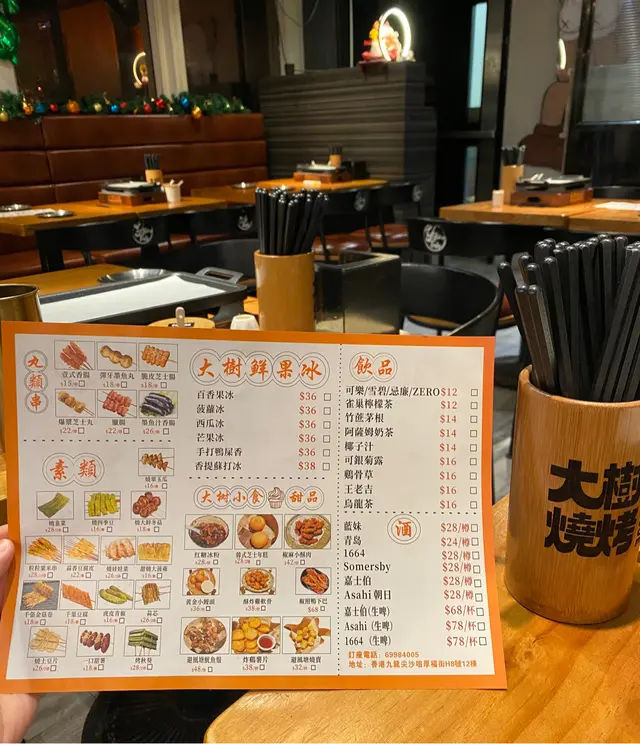 大樹燒烤 (尖沙咀) 网址: https://s.openrice.com/QrLS0F1eC00 地址: 香港尖沙咀厚福街8號H8 12樓 电话: +852 69984005