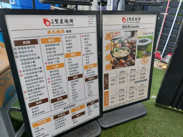 日间时段(13:00-17:30)假日收费,成人$198,开炉费$80(一个炉供2-8人用),两位即系$476。流程:1. 门口先付款(现金、八达通、payme、alipay、wechat pay,$500以上,可以VISA)2. 拎收据,戴手带,跟职员指示,系场内不同区域拣位3. 带埋收据去用具处拎嘢,包括圆形大烧烤网、火锅盘、餐具(纸杯、纸碗、纸碟、竹筷子)、装食物碟、纸巾、蜜糖+扫、烧烤夹4. 用装食物碟去食物区拎嘢食烧烤食物款式都算多,一般烧烤会食嘅嘢都有齐,不同种类事事正正放哂系雪柜入面,十分企理。除咗烧烤,仲可以打埋边炉,有自助汤底俾你自己搞。烧烤食物大部分都试过,质素正常,腌制肉类味道亦不错。牛仔骨、鸡翼(有五款味,我个人觉得蒜蓉、川椒麻辣呢两款好味)、金沙骨、咖喱鱿鱼是必食之选。饮品有汽水机、橙汁、青柠水、咖啡、花茶,仲有冰块提供,呢啲全部费用已包,任饮。另外有付费食品饮品,例如棉花糖、雪糕雪条、樽装支装罐装饮料、啤酒。总结:之后会再去帮衬(前设天气一定要凉啲)。场内环境干净企理(厕所清洁无异味),全场禁烟(好重要),空间感足(炉与炉之间好阔落,一啲都唔局促),食物嘅款式、味道、质素满意,员工做嘢快手,收费合理。…查看更多