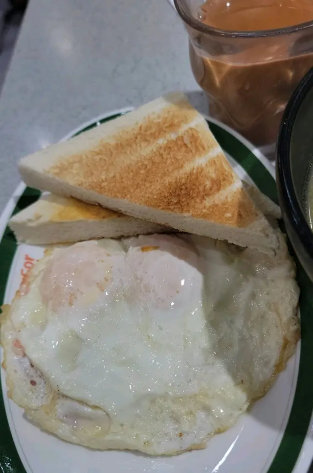 全日供應:火腿煎雙蛋,牛油方包(烘底),熱奶茶