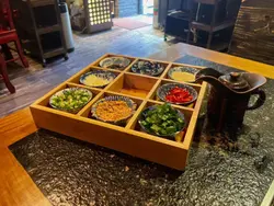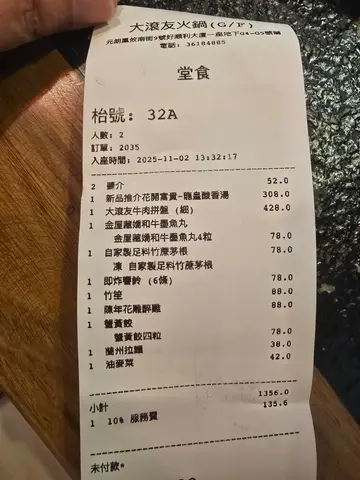 这次专程到元朗「大滚友」,走进店内先被木枱石台与中式红木椅吸引,墙上满满宣传画,老派而热闹,有点像回到早年正宗重庆馆子。枱面收纳齐整,店员主动解说汤底和下锅时间,节奏俐落。汤底:玲珑浮凸花胶鸡汤锅(半只)金黄带胶质,未落料已闻到鸡香。花胶量不吝啬,滚起后胶口感明显,喝起来厚而不腻,有胡椒微辛收尾。用来涮肉、煮菜都能锁住甜味,属今餐最大亮点。建议还未煮食前可以先试试直接饮用汤底,十分清甜。佐料桌边送上一大格自助调味盘:葱花、蒜蓉、香菜、脆蒜、芝麻、辣椒等,选择比一般火锅店丰富,且新鲜干爽,拌成蒜蓉香菜酱很百搭。手打蟹子鲜虾九丸子个头饱满,弹性与咬口兼备,蟹子并存在感强,鲜虾丸鲜味重,入锅两三分钟刚好,吸汤不松散。日本稻庭乌冬上桌是「砖块」造型,纤细有筋度,最先下锅比较适合以免吸收过多肉汁;吸了鸡汤后香味提升,记得别煮太久。油麦菜洗得干净,切段整齐,快速涮十数秒,清甜突出,作为重口肉品之间的缓冲很合拍。香辣无骨凤爪以干冰烟雾登场,卖相抢镜。味道是酸香带微辣的凉拌路线,爽脆不油,作前菜开胃合格。酒香陈年花雕浸牛肉薄切牛片预先以花雕调味,酒香先到,接著是牛脂甜味,与鸡汤相得益彰。整体比较厚身,所以咬口感比较强。大滚友牛肉拚盘(细)部位选择多,见到肩胛、后有牛粒,牛粒煮熟后完全不硬十分爽口,中间为牛白比较弹牙,前面3款为比较瘦部份适合喜爱少油花的客人食用,左则有牛舌。整体部分不会太肥,以免食得过份油腻。价钱属中上价位但对得起质素。大滚友主打浓郁花胶鸡汤与讲究的肉品、手打丸,调味配料诚意十足。若想找一间有老派气氛、重汤底、重食材的火锅店,这里值得专程。推介必点:花胶鸡汤锅、花雕浸牛…查看更多