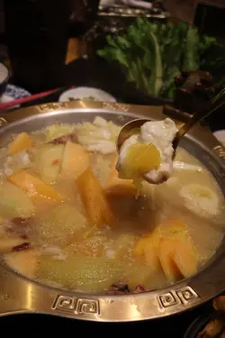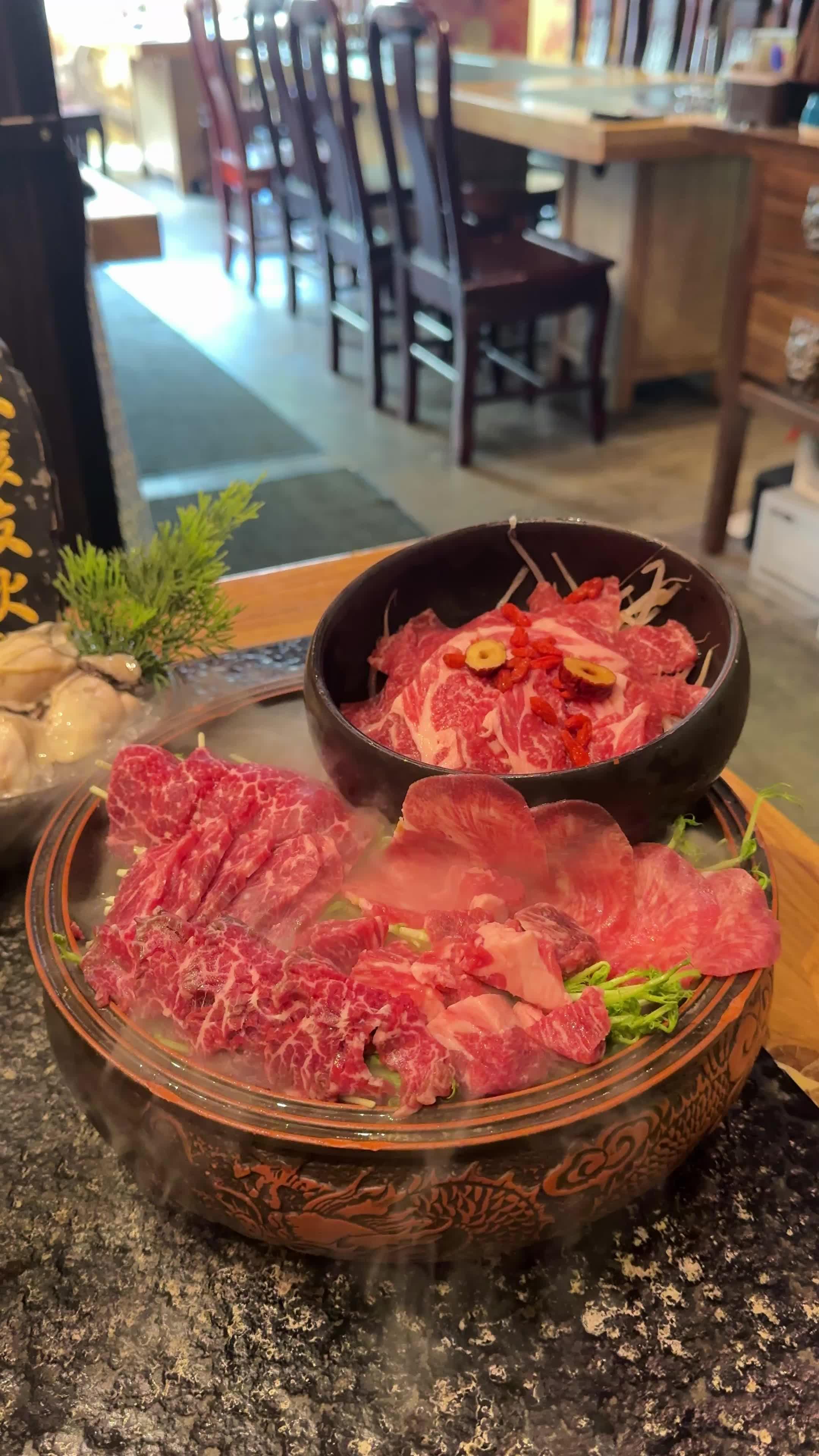 在荃湾的街角,藏著一间火锅界的宝藏——「大滚友火锅」。踏入店内,彷佛穿越时空,置身于古代宫廷。青花瓷器、龙纹锅炉、干冰仙气,视觉与味觉的双重盛宴就此展开。首推「樱唇半开特色卜卜蚬锅」,蚬在滚汤中逐一打开,发出「卜卜」声响,犹如奏鸣曲般揭开序幕。汤底以蒜蓉、辣椒、鸡汤熬制,鲜香扑鼻,蚬肉肥美,入口即化,令人回味无穷。紧接登场的是「日本广岛蚝」与「深海龙趸片」,海味澎湃,鲜度满分。蚝如海中珍珠,龙趸片则厚实滑嫩,轻涮即熟,鲜甜尽现。「山水滑豆腐」与「大滚友杂菜拼盘」则为火锅添上清新一笔,豆腐如水般柔滑,蔬菜吸汤入味,平衡整体口感。面食方面,「兰州拉面」手工拉制,筋道十足,吸汤力强,是汤底的最佳载体。而「手打鲜牛丸」则弹牙有劲,牛味浓郁,每一口都充满职人精神。压轴登场的「大滚友牛肉拼盘(细)」如宝箱般呈现,手切牛肉层次分明,油花分布均匀,入口香滑,令人惊艳。饮品方面,自家制「竹蔗茅根」热冻皆宜,清热解腻,为整场火锅之旅画上完美句号。整体而言,「大滚友火锅」不仅是一场味蕾的飨宴,更是一场文化与美学的交融。无论是朋友聚会、家庭聚餐,还是情侣约会,这里都是理想之选。在火锅的热气中,品味生活的温度。…查看更多