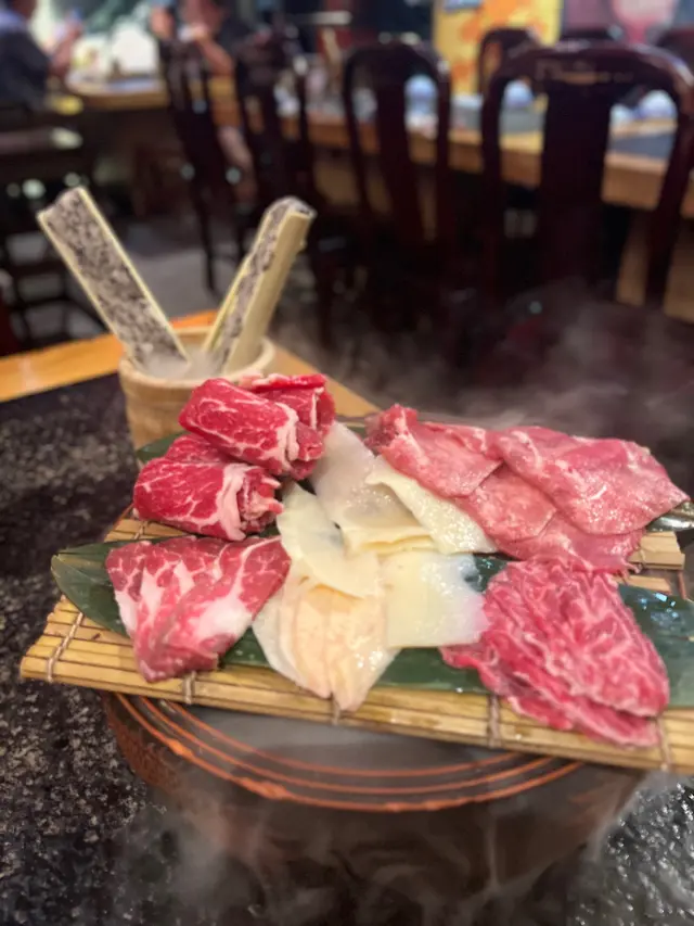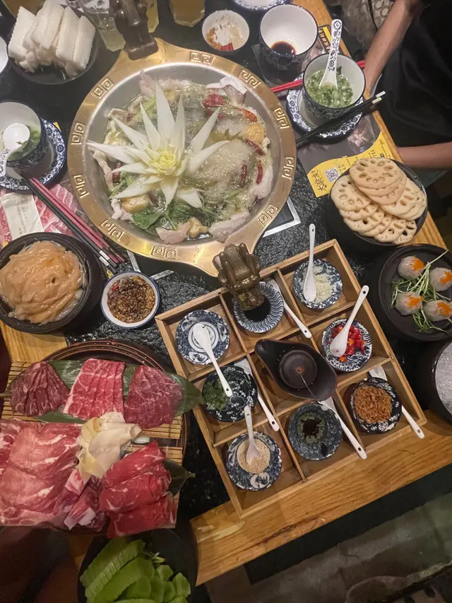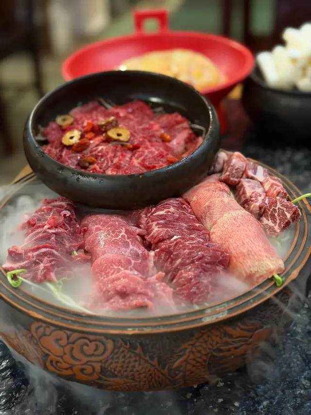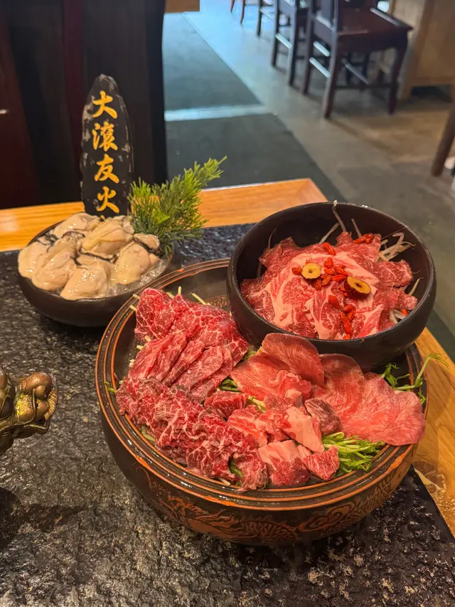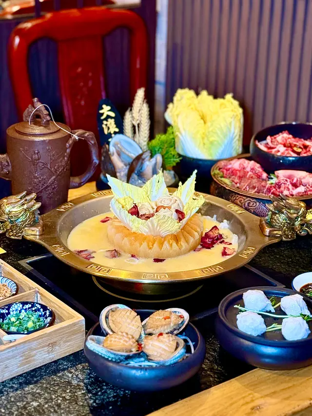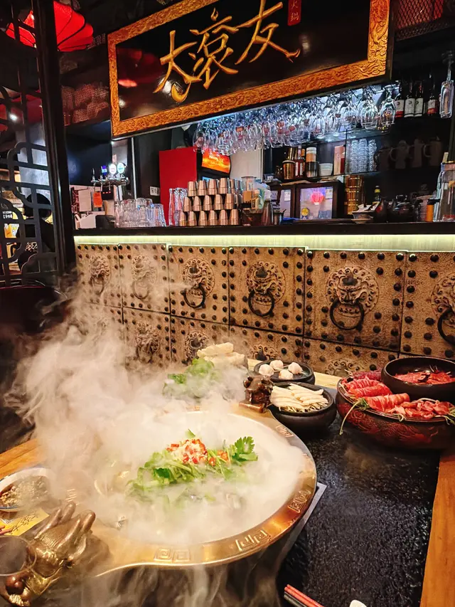 在荃灣的街角,藏著一間火鍋界的寶藏——「大滾友火鍋」。踏入店內,彷彿穿越時空,置身於古代宮廷。青花瓷器、龍紋鍋爐、乾冰仙氣,視覺與味覺的雙重盛宴就此展開。首推「櫻唇半開特色卜卜蜆鍋」,蜆在滾湯中逐一打開,發出「卜卜」聲響,猶如奏鳴曲般揭開序幕。湯底以蒜蓉、辣椒、雞湯熬製,鮮香撲鼻,蜆肉肥美,入口即化,令人回味無窮。緊接登場的是「日本廣島蠔」與「深海龍躉片」,海味澎湃,鮮度滿分。蠔如海中珍珠,龍躉片則厚實滑嫩,輕涮即熟,鮮甜盡現。「山水滑豆腐」與「大滾友雜菜拼盤」則為火鍋添上清新一筆,豆腐如水般柔滑,蔬菜吸湯入味,平衡整體口感。麵食方面,「蘭州拉麵」手工拉製,筋道十足,吸湯力強,是湯底的最佳載體。而「手打鮮牛丸」則彈牙有勁,牛味濃郁,每一口都充滿職人精神。壓軸登場的「大滾友牛肉拼盤(細)」如寶箱般呈現,手切牛肉層次分明,油花分布均勻,入口香滑,令人驚艷。飲品方面,自家製「竹蔗茅根」熱凍皆宜,清熱解膩,為整場火鍋之旅畫上完美句號。整體而言,「大滾友火鍋」不僅是一場味蕾的饗宴,更是一場文化與美學的交融。無論是朋友聚會、家庭聚餐,還是情侶約會,這裡都是理想之選。在火鍋的熱氣中,品味生活的溫度。…查看更多
