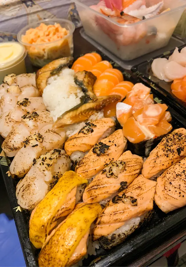 大漁簡直就是我生活的動力❤️本來就很熱愛壽司的我,加上最近多是外買晚餐大漁市場簡直就是為我度身訂造的這裏的壽司款式夠多,就算是三文魚都有多樣選擇。不但壽司,連刺身都新鮮吸引。🍣 必點款式 我比較鍾情於三文魚,就三文魚壽司已經夠我點滿滿滿的一盤壽司。我常點的款式會是三文魚壽司芝士三文魚壽司蒜燒三文魚壽司黑椒三文魚壽司辣汁三文魚壽司不同的三文魚口味,足夠滿足身為三文魚忠粉的我。除了三文魚還有就是 蒜燒北海道帶子壽司,新鮮的帶子再加上燒香的蒜香味。每次我都會不捨地留到最後慢慢品嘗🤤🤤但多人等候時製作時間會比較長,最好先電話下單。下班就可以直接取回家慢慢享用查看更多