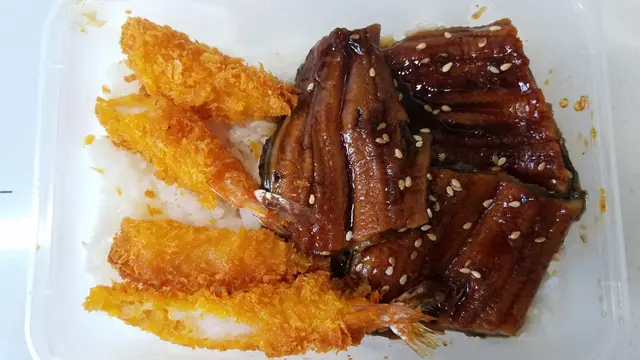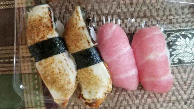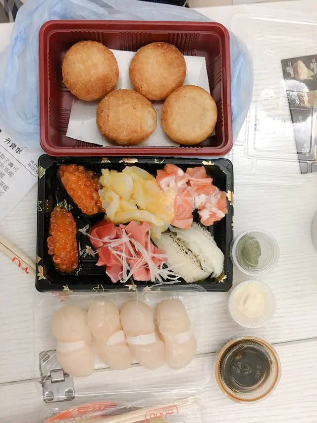 一直以來都是這店的常客,皆因食物質素不錯和份量足,服務快及店員的友善也值得一讚!蒲燒鰻魚飯(一客) $60  兩件炸蝦,正常水平。有白芝蔴的蒲燒鰻魚,沒有魚腥味,醬汁香,鰻魚香甜軟稔,白飯裝滿半個盒子。點了兩件手卷,放在同一外賣盒內。海膽手卷(一件) $45手卷食材與紫菜分開,以確保紫菜保持新鮮脆口。喜愛親自包手卷,不同食材會有不同程度的包手卷難度,海膽甘香,份量可觀,必食。三文魚籽手卷(一件) $48  三文魚籽份量同樣可觀,新鮮好味。蒜燒日本墨魚壽司(兩件) $26 - 圖左當外賣盒一開,第一時間聞到的就是蒜香味,非常香。墨魚經火炙後呈現成花瓣狀,足見火炙前在墨魚表面所留下的刀功,加強墨魚嚼勁,再加上蒜蓉,好味。海鹽左口裙邊壽司(兩件) $18  - 圖右左口裙邊經火炙後魚油滲入壽司飯裡,令壽司飯有魚油香味,是我的至愛。左口裙邊魚脂出色,口感軟滑,無須添上壽司豉油,因為海鹽已令整體味道更鮮。外賣可親身到店舖下單或以電話形式下單後到店舖付款及自取,非常方便。查看更多