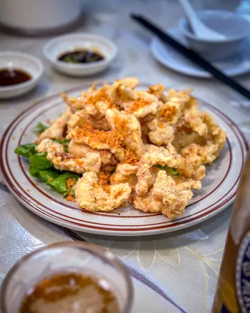 椒盐大吊片,外脆内软😝,真系好味好鲜。豉椒炒蚬,啲蚬肉冇沙,仲有海水味!值得一赞就系啫啫什菜煲,好香好惹味,虾干好正,菜都好新鲜!