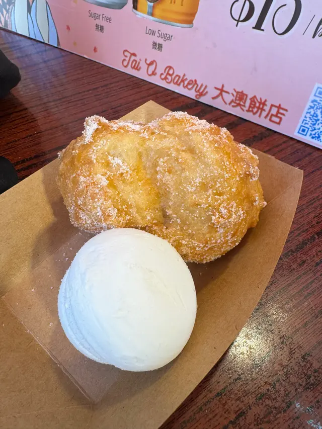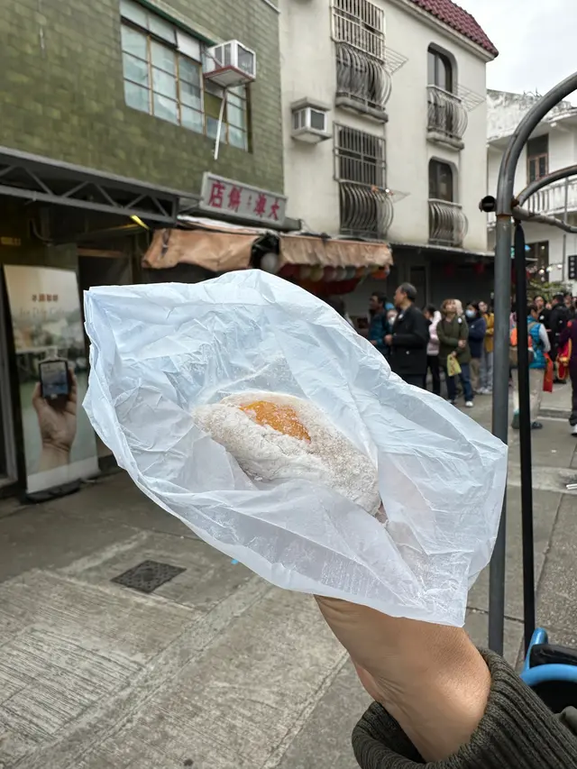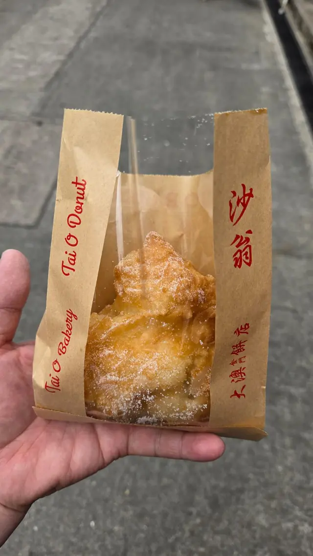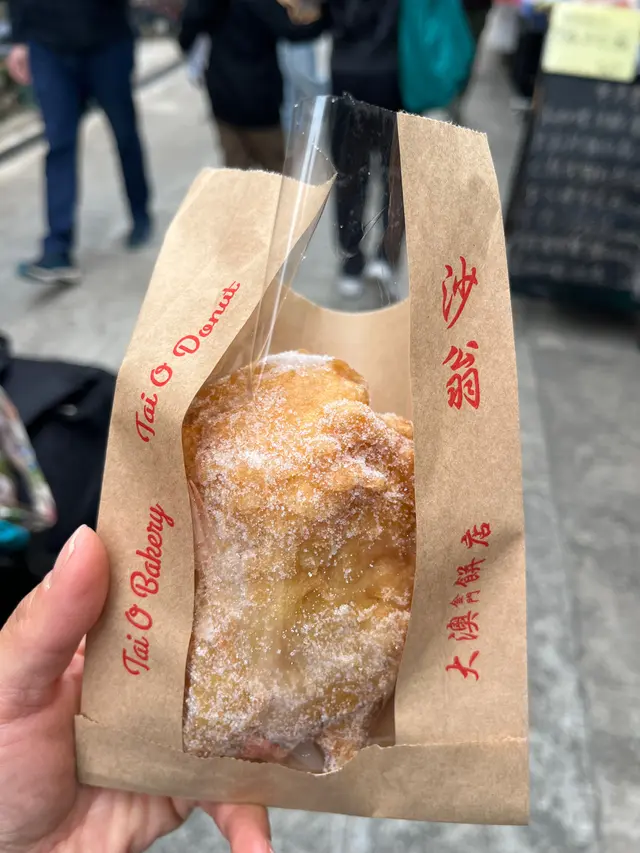每次入大澳,就算排長龍都要衝去 「大澳餅店」 買沙翁!佢唔止係招牌,直頭係區內傳説級小食~親眼見過有人 一打一打咁買,未試過真係唔明,食完第一啖你就明點解會上癮!🔥 即炸沙翁 $15/個日日新鮮炸,假日更加係不停爐。拎上手仲熱辣辣,外層沾滿粗粒沙糖,咬落 「咔嚓」 一聲脆響,入面卻如雲朵咁軟綿!蛋香濃郁到似食緊酥化版燉蛋,空氣感十足又唔油膩,「外脆內軟、甜而不膩」 八個字完美總結~「簡單,卻令人回味無窮」——大概就係呢粒沙翁嘅魔力。如果你入大澳未食過,真係要試一次,包你成為下個買十個嘅人!…查看更多