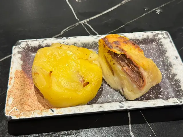 鵝肝~切細件 焗1邊 另1邊白色似唔熟
