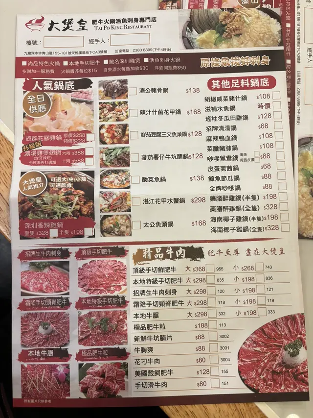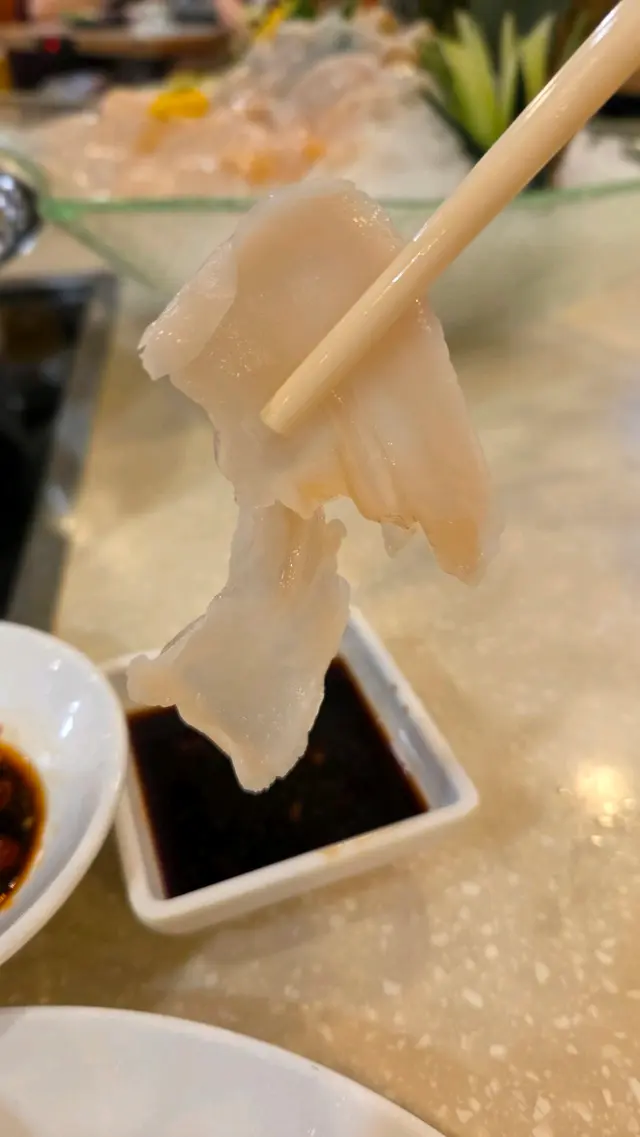 這家火鍋店是一間充滿地道風味的小店,裝潢走街坊小廚的風格,提供多樣化的選擇🍲。這裏食材新鮮,活魚刺身非常高質🐟,手切肥牛和牛頸脊都係一流🥩,火鍋用料上乘,魚翅足料,小菜也很有水準,價格卻十分合理💰,每次光顧,都從來沒有讓人失望過✨。分享一下我們單點的菜品📕:▪️活魚刺身日本池魚肉鮮甜🐟,切片厚薄均勻,口感極佳👌。▪️原隻象拔蚌刺身入口爽脆,鮮味濃郁🦪。▪️三文魚腩肥美多汁,口感和濃郁順滑,經常售罄🍣。▪️本地特級手切肥牛肉質鮮嫩🥩,油花分佈均勻,手切有一定厚度,涮煮後口感香濃,肉味濃郁,品質一流🥇。▪️濃雞花膠魚翅鍋6兩鍋底比一般更為濃郁,充分提煉出雞湯的精華🍜。鍋中加入大量的魚翅🎣,份量十足。▪️蘿蔔清湯腩鍋嫩滑的崩沙腩🐄和鮮甜的蘿蔔為主料,湯底清澈,味道鮮美🍲。▪️臘味飯用料豐富高質,臘腸、潤腸、臘肉、臘鴨等醃製肉類與米飯🍚一同蒸煮時,肉汁融入米飯中,味道濃郁,香氣四溢。▪️清蒸奄仔蟹🦀 ▪️避風塘炒蟹🦀▪️白鱔片🐍 ▪️蟶子王▪️炸韭菜餃🥟 總括而言:我們單點的菜品大部份是時價,一行八人,人均消費800左右💵,包廂可自備酒水🍷,材料新鮮高質,非常愉快的用餐體驗😋。…查看更多