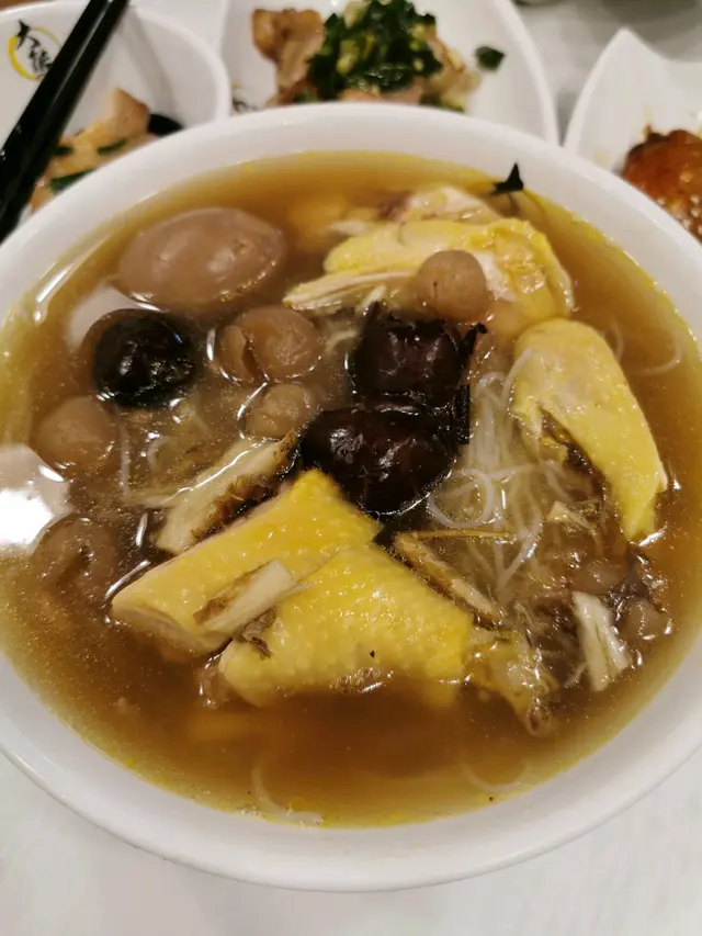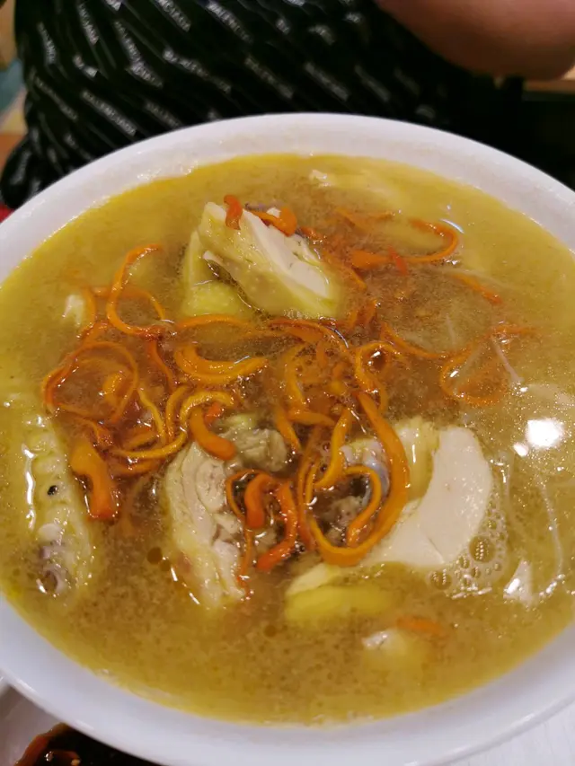 好耐無嚟食過,今日嚟到原來轉咗手,見到仲有得食蟲草花雞湯,就入嚟回味一下。坐位比以前寬敞舒適,亦光猛咗。叫咗個蟲草花雞湯銀針粉(午餐包飲品$42)平過單點,有四大件雞件,雞肉好滑,湯好鮮甜,無味精味,飲完不口渴。米線餐叫咗豬手,瑞士汁好入味,豬軟骨就同其他舖頭差不多,可能都是來貨質素。加個十蚊雞蒜泥白肉。十蚊有八片都ok,辣椒油好香,蒜可以再多點。值得推薦。ดูเพิ่มเติม