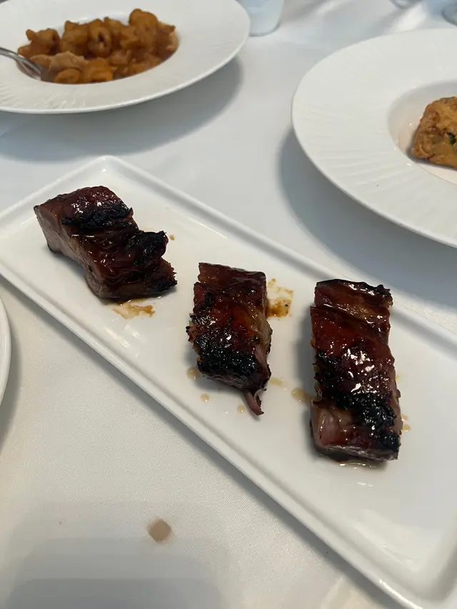究極難BOOK中菜😵亞洲五十大NO.1寶座😲人氣話題度最高嘅中菜🤩🫶🏻大班樓🫶🏻「時間只有這麼多,叫安歌會否比較傻」,無論人同食物,都係講求綠分,散聚有時,如果要講到香港邊一間中菜最令人懷以忘懷,係我心目上排名榜第一位嘅非大班樓莫屬,依稀記得2021年初訪大班樓已經榮獲亞洲五十大NO.1嘅寶座,已經全城熱話,一位難求,後來改變預約制度及識人好過識字系列先可以訂到晚餐位置後已經再無緣尋味!大班樓之後再拎埋米芝連一星,無論假日平日,午市晚市都已經訂無可訂,只能每幾個月留意官方IG開放預約時間,每次預約都好似搶演唱會飛落足心力先有機會訂到一席。為左應付龐大食客需求,佢地都由九如坊搬遷到新鋪,機緣巧合之下,終於有機會可以再次品嚐到香港中菜界傳奇熱門店,相信大家都驚期望度拉到好高,但實際食落不外如是,可以幫大家定下驚先,首先,大班樓雖然聲名顯赫,但係價錢對比其他星級米芝蓮中菜嚟講。係走性價比親民路線,無論午市晚市散叫套餐都相差不大,人均5-800位都已經可以捧腹離場。1.炭火第一刀叉燒4.8/5⭐️時不宜遲,前菜就係一道極之珍貴炭火第一刀叉燒,肥瘦適中不在話下,厚切叉燒嘅口感滿足兼夾且有住住些微炭燒焦脆,係一道非常滿足嘅前菜,唯一美中不足係每人只分配到一件,更需要提前預訂,唔係就無機會試到依道招牌之一嘅名物。2.香酥七味羊肋骨4.3/5⭐️第二道嘅羊肋骨,非常香酥,建議大家分低儀態,直接用手,入口唔需要用力已經可以做骨肉分離嘅效果,我地食到齒甲留香,回味無窮。3.海鹽蔥油貴紀雞4.3/5⭐️大量蔥油淋起貴紀雞上面嘅賣相已經令人食指大動,加上每件雞都非常嫩滑,不過對比上次到訪食過嘅另一招牌名物慢煮乾蔥煀滑雞(4.9/5⭐️)略嫌唔夠驚喜,好多時都聽到雞有雞味,魚有魚味依句廢話,但係依度嘅慢煮乾蔥煀滑雞真係做到雞有雞味依個名符其實嘅效果,令人一試難忘,係我係香港迄今為止食過最好味嘅雞。4.脆皮百花雞3.9/5⭐️依道菜第一次到訪時告知需要預訂先有,今次第二次到訪當然提早預訂,佢其實並唔係普通嘅雞,簡單嚟講就係脆雞皮釀入蝦膠模彷返成雞件,都係心機功夫菜,難怪要提早預訂先可以品嚐,不過可能係今日叫左兩道雞,雞件脆皮但蝦膠唔太夠彈,依味反而略嫌無甚驚喜,不過不失,一次就算。5.招牌雞油花雕蒸花蟹配陳村粉4.3/5⭐️大班樓依個招牌菜伴隨住亞洲五十大No.1之後就享負盛名,唔試佢依個招牌雞油花雕蒸花蟹,都唔好同人講嚟過大班樓,盛名之下,兩次到訪都有叫到依道名物,老實講,第一次到訪可能期望值太高,上菜擺盤非常吸晴奪目,打卡一流,懷住興奮心情當然即刻食之而後快,但入口一刻就發覺花雕酒味蓋過咗蟹同雞油嘅鮮味,令到索汁嘅陳村粉被酒味掩蓋,稍稍扣分,當然,蟹嘅質素好高,無乜挑剔。而第二次到訪,與友人閒談間都傾起上次食花雕蟹嘅經歷,細心嘅侍應都有聽到我地嘅討論,好貼心地幫我地同廚房溝通依個情況,而第二次到訪嘅雞油花雕雞果然正常水準發揮,無被酒味蓋過鮮味,依個菜式都仍然係每次到訪必點嘅。6.蟹肉燸米飯4.9/5⭐️同樣算係半隱藏餐牌,只有出現係套餐,即場散叫係無得點嘅,但係可以提前預訂,經過咁多道精美餸菜嘅洗禮,我地都已經心滿意足,但估唔到,成餐飯嘅高潮,竟然係依盤蟹肉燸米飯,侍應提前捧上俾我地打卡同過目之後就幫我地平分,外表普通平凡嘅燸米飯,大家本身以為只係填飽肚嘅水準滋味,但係依碗燸米飯嘅蟹肉鮮甜同燸米飯融合得非常恰到好處,而且蟹肉份量多到每一啖飯都有蟹肉,令我地食完一碗之後即刻意猶未盡,急不及待添飯,為依餐星級尋味之旅劃上完美句號。-總結:大班樓由2021年獲得亞洲五十大餐廳NO.1之後風頭一時無倆,及後更上一層樓奪得米芝蓮一星,餐廳格局並非走奢華路線,似係高級私房菜格局更多,依度唔似其他三星中菜咁無微不至,但餐廳食物水準同性價比相對之下更加係實而不華,令人記憶更加深刻,念念不忘,我亦都非常期待下次再訪!====大班樓中環九如坊18號地下(舊址)中環威靈頓街198號The Wellington3樓==== #中環美食 #大班樓 #hkfood #hkfoodie #foodiehk #hkfoodblogger #hkfoodlover #hkfoodstagram #hkfoodporn #852eats #hkiger #食好西 #相機食先 #香港美食#星級尋味====…查看更多