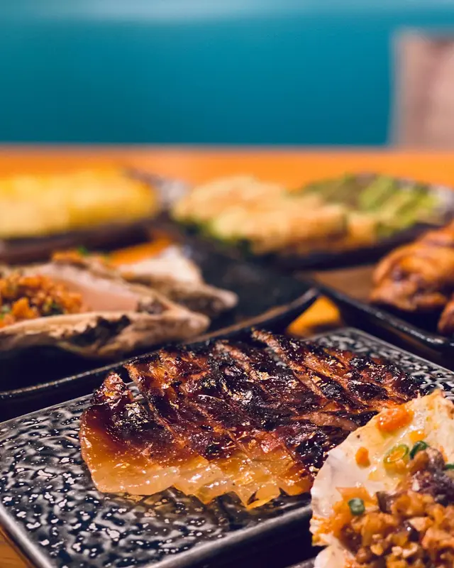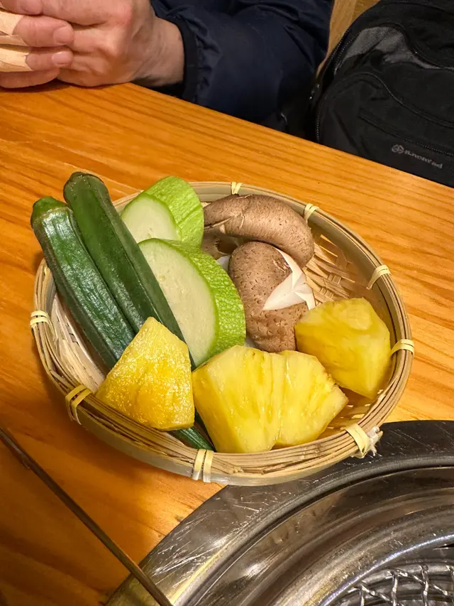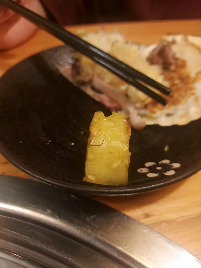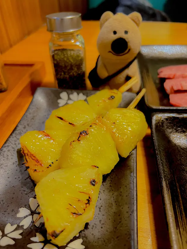串燒、燒肉,共冶一爐。 每款串燒都有最低「燒」費,以串為單位。性價比十分高,有此安排亦非常合理。(串燒未能盡錄) (1)燒豬頸肉自家製泰式辣汁,比起某區泰菜集中地來比較,辣度適中,後勁帶甜。 (2) 甜蜜燒菠蘿十分幸運地獲得兩串甜蜜蜜、又沒有渣。 中段開始,需要蔬菜類洗滌心靈。(3) 錫紙金菇 (4) 陀地燒茄子 (5) 免治和牛多士餡料中間有個神秘調味,有Wasabi味,能減低油膩感。 (6) 和牛沙巴當 燒肉的爐具十分友善,將油煙減到很少。不過,店員說燒肉供應會在不久後停止,主打串燒,所以肉類款式會逐漸下降。 (7) 厚切牛舌芯(8) 柚子雞肉 (9) 菠蘿可爾必思 & 菠蘿青檸梳打「一寸光陰一寸金,食完要飲板藍根。」查看更多