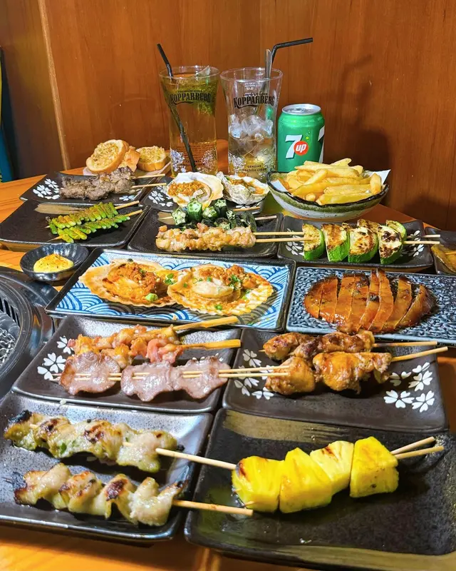 超人氣串燒店「陀地燒」🍢串燒款式選擇多不在話下,而且價錢親民實惠✅最近更推出賀年優惠套餐,難怪晚市總是座無虛席🔥🔸陀地燒新年沖喜二人餐($288)🐔雞皮串(2串)雞皮串燒得金黃酥脆,帶淡淡雞肉香味,佐酒一流🐥雞肉串(2串)雞肉串外層微焦,內裏保持住鮮嫩多汁嘅肉質👅薄切牛舌串(2串)牛舌片薄而嫩,其鮮美同燒烤嘅香氣相結合,令人有驚喜🐮招牌牛肉串(2串)牛肉串外焦內嫩,每啖都帶有濃郁嘅牛肉香氣🐖豬頸肉串(2串)豬頸肉串燒得相當入味,豬頸肉嘅脂肪同肉質相間,滿有口感層次🧄蒜芯串(2串)蒜芯串口感爽脆,灑上孜然粉,食落辛香惹味🥔土豆串(2串)土豆切片呈上,食落爽脆帶自然甜味🥒翠玉瓜串(2串)翠玉瓜串燒烤後仍保持住清脆嘅口感,味道清新鮮甜🦪陀地燒生蠔(2隻)生蠔燒得恰到好處,蠔肉鮮嫩帶濃郁海鮮風味🐚燒元貝(2隻)燒元貝鮮嫩多汁,肉質飽滿且彈牙🐟味淋魚乾經燒烤後嘅魚乾肉質變得酥脆,沾上他他醬味道層次更豐富🥖蒜茸包帶濃郁蒜香味嘅蒜茸包,口感酥脆相當滋味🍍蜜糖菠蘿串(2串)菠蘿串金黃吸引,菠蘿嘅酸甜配合蜜糖嘅甜蜜,幸福感滿滿🔸椒鹽雞軟骨($18/2串)椒鹽雞軟骨炸得酥脆可口,軟骨咬落有嚼勁🔸雞爽肉($24/2串)雞爽肉口感鮮嫩,而且醃製得非常入味🔸秋葵串($16/2串)燒秋葵串保持住蔬菜嘅鮮脆口感,食落有淡淡嘅煙燻風味🔸即炸有皮薯條($20)薯條炸得金黃酥脆,搭配濃郁黑松露醬味道更出色🔹咸檸七($24)清新解膩嘅飲品,鹹鹹酸酸嘅檸檬配上冰涼七喜,正!🔹冷泡白桃烏龍茶($12)飲品帶清甜白桃味同淡雅幽香烏龍味,消滯好選擇查看更多