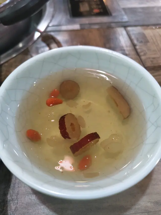 花膠雞湯非常之濃郁,好飲。叫咗個四人餐都有一碟花膠倒落去好足料。整體上啲嘢食都好新鮮。四個大人一個小朋友叫咗個四人餐加咗兩碟火鍋料,一支酒一支天地1號,$1800埋單。中價。The fish maw chicken soup is very rich and tasty. The four-person set includes a generous portion of fish maw. Overall, the food is very fresh. Four adults and one child ordered the four-person set with an additional two hot pot dishes, a bottle of beer, and a bottle of Tian Di No. 1, totaling $1800. It is a mid-range price.查看更多