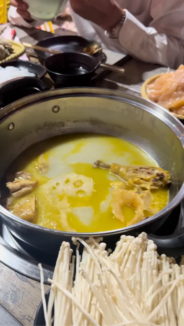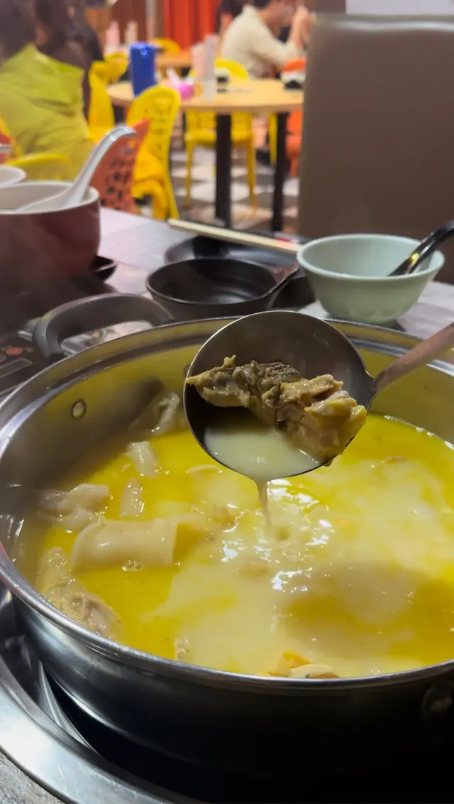 第二黎食,今次仲飲哂湯底,見到相剩返少少湯底🤏,但其實我地飲到一滴都無剩先加湯打邊爐😂如果用openrice訂座,4人或以上 花膠雞(半隻)湯底先$168 (原價$268),連埋加一既話四個人平均每人先 $47有找,每人可以有三四碗雞湯加雞件同埋花膠,打邊爐之前飲湯都飲到飽左大半。🍲花膠雞湯 - 個湯真係好好味,雞件嫩滑,花膠都軟稔,所以都無諗過食其他湯底。另外我地仲叫左幾碟配菜,個人推薦豆苗,同 手切安格斯牛肉👍🏻 豆苗🌱 $48,幼嫩無渣,好食手切安格斯牛肉🥩 厚度適中,唔係薄切切既,又唔會容易淥到好韌,油脂唔多,適合打邊爐,不過因為飲哂雞湯之後再加既湯底味道比較單一,所以點豉油會好食啲。有兩樣個人覺得一般既:金牌牛肉丸🟤 有牛味同有汁,但咬落去感覺好老桂花蚌 唔識滾🙈 大小厚薄不一,好難掌握時間,一係太老一係唔熟,仲有嚿有苦味魚皮餃、墨魚滑、唐生菜🥬、芋絲同魚皮就正常野,不過不失,叫左甘多野埋單$1200有找,每人唔洗$300呢間花膠雞湯底質素高,價錢又唔貴,不過要搵齊4個人或以上用openrice訂先最抵。如果兩個人黎食,唔講湯底要$268先,一般食量,半隻花膠雞湯底連湯料都幾飽下,基本上都食唔到其他野。🍴 大笪地花膠雞 (旺角)📍旺角彌敦道613號飛達商業大廈3樓#19_flog旺角 #19_flog火鍋 #hkfoodie #foodies #香港美食 #旺角美食 #食評 #foodhk查看更多