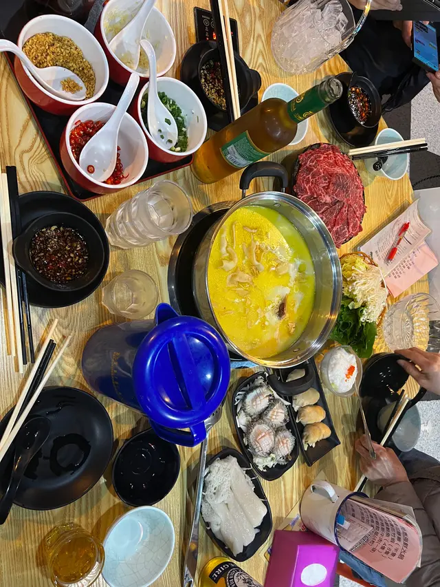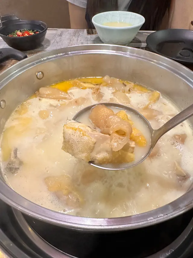 話說當年呢間店開業初期,都同友人食過,佢多年後仲維持到質素,真係不得了🤪上次唔小心search 錯野,同佢緣慳一面,今次終於食到超開心‼️❤️❤️❤️海鮮火鍋套餐 花膠濃湯雞鍋 (半隻雞)呢個係佢嘅招牌鍋,雞湯好濃郁,花膠有大概8件有大有細嘅。 第一轉飲到得返好少湯先捨得加水打邊爐。不過佢加嘅都係雞湯,第二轉冇第一轉湯咁濃,但仲係正常雞湯質素都算係咁。 最驚人嘅係食到最後,個雞都唔鞋😱象拔蚌刺身(一份)刺身爽口又新鮮😚而且份量好多,大概35-40塊。海鮮(鮑魚、蟶子、花甲、蠔各兩件)鮑魚煮咗幾分鐘啱啱好,厚身得嚟但仍然爽口。蟶子同花甲中規中矩,而個蠔就好大件😱even煮完都好大舊同厚身☺️手切安格斯牛肉(另加$60升級)本身套餐包西班牙橡果黑毛豬一份,揀咗升級要手切牛肉😋😋 牛味夠重,份量又係好多,大概40塊咁多,最後係要抖抖先可以食埋去🙈蔬菜拼盤(一份)有生菜、娃娃菜同金菇,索埋湯食幾正🥰本身飲湯同食雞都已經飽咗一半,牛肉同刺身份量又好多,今餐又飽又滿足。 雖然邊爐嚟講唔平,但Yummy覺得都值嘅查看更多