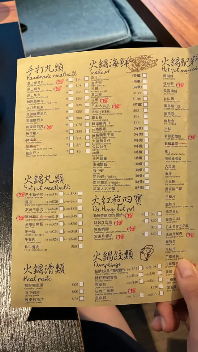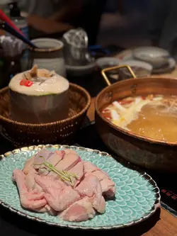 #MC带你去荃湾.香港人一年四季都钟意打边炉,而且港式火锅必定有游水靓海鲜,依间本地品牌火锅店就以足料靓汤底及高质靓食材为招徕!➖✨ 大红袍火锅料理.餐厅主打港式火锅,提供超过20款火锅汤底,以及超过100款火锅配料;店内行中国风设计,装潢传统雅致,搭配青砖墙、红灯笼、中式案几,以及书法挂画等,古式古香,而且地方宽敞舒适,空间感大。➖🥢 椰子鸡汤底|$168 ✨招牌菜式✨.真材实料超鲜甜!汤底用上两个原个椰青水,搭配半只新鲜三黄鸡熬汤,再加入五指毛桃、红枣、杞子等药材,鲜甜滋润。(建议打边炉前先饮一碗汤,非常滋补!)➖🥢 极上牛肉刺身|$188 ✨人气之选✨.刺身级牛肉雪花均匀,夹起薄薄一片牛肉与少少洋葱丝,蘸一点洋葱酸汁,牛肉入口即溶,口感非常软嫩充满脂香,绝对值得一试。➖🥢 顶级安格斯牛颈脊|$278/例.牛颈脊脂肪比较少,轻灼5秒就可以,入口肉味浓郁有嚼劲。➖🥢 广岛蚝|$118.一份八只广岛蚝,蚝身饱满肉质厚实,鲜甜蚝味浓又无腥味,煮熟后又无过份缩水,好满足!➖🥢 珊瑚蚌|$118.珊瑚蚌轻灼至卷曲就可以,爽脆弹牙,由于珊瑚蚌都没有胆固醇和脂肪,所以非常健康。➖🥢 桂花蚌|$138.桂花蚌大大条,份量好足料,搭配椰子鸡汤,入口好鲜甜而且爽口弹牙。➖🥢 招牌饺(黑松露蟹肉饺)|$54/半份.半份招牌饺有三大只,皮薄馅靓,蟹肉猪肉馅料好饱满,加上阵阵黑松露味,好好食!➖🥢 手打柠檬茶|$28.大大杯嘢饮!香水柠檬味道突出,而且茶味香浓,解腻一流。➖🥢 餐前小食|$20/份.➖🥢 酱油|$15/位.➖➖➖➖➖➖➖➖➖➖➖➖➖➖🈹 限时优惠.身份证上含有 1,5,7,9 四个字其中一个或以上即享有以下优惠:- 1个字9折- 2个字85折- 3个字8折- 4个字75折* 不计算重复及身份证括号内号码* 星期日、公众假期及节日不适用* 优惠不可与其他优惠/折扣及现金券同时使用➖➖➖➖➖➖➖➖➖➖➖➖➖➖…查看更多