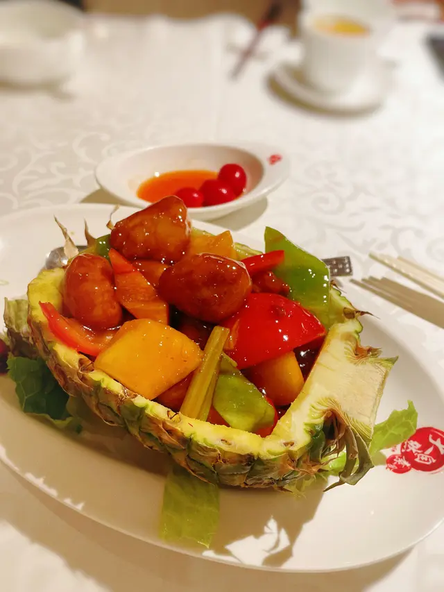 已經唔係第一次食了,之所以會再黎,係因為餐牌上樣樣嘢都好吸引,但胃容量有限,上次試唔曬🤣呢一晚食咗好多樣嘢1️⃣ 菠蘿咕嚕肉三色椒份量多過肉🤣 不過好食!2️⃣鮮竹銀杏湯浸翡翠苗清清地又大大碟👍🏻👍🏻👍🏻3️⃣鬆化芋頭魚真係超級鬆化😋 大家都爭住食!4️⃣三色刺身貪得意,叫來試試😂 點知又ok 喎! 真係有食魚生的感覺😂另外,仲點左金沙南瓜蝦,叉燒荷葉包一樣好食! 如果要來吃飯,強烈建議叫多啲人,可以叫多幾味吖嘛最後,是日甜點係芋頭西米露!勁香芋頭同椰汁味啊!餐廳嘅姨姨會主動過嚟問大家要唔要,唔洗自己order架記得打電話book位啊查看更多