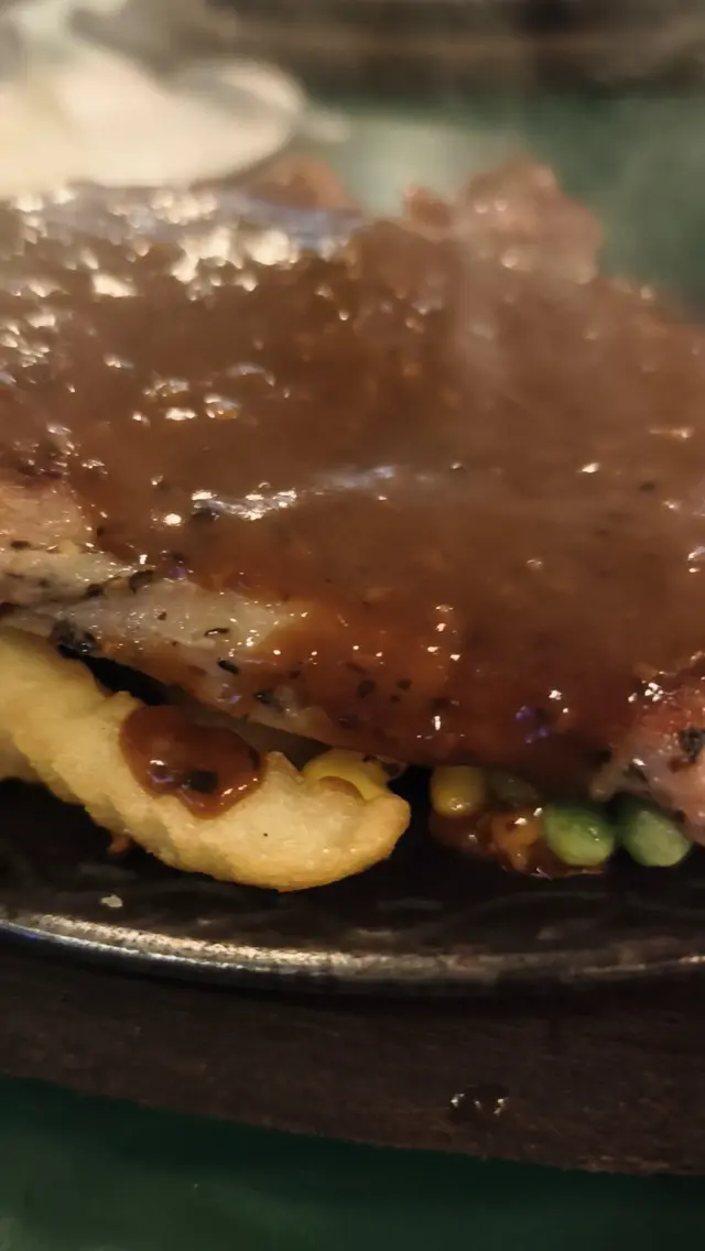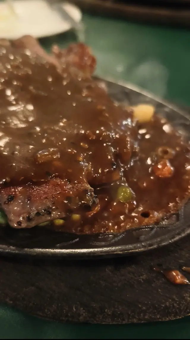 肉質屬於有咬口但唔會韌,蘸滿濃郁嘅黑椒汁,非常惹味
