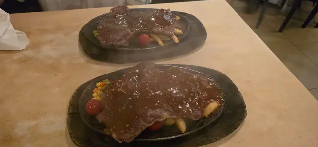 黑椒汁鐵板鑊仔牛柳、黑椒汁鐵板雜扒