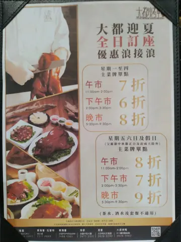 「大都」即北京,供应以明火挂炉及果木熏烤方式烤制的烤鸭,包括招牌食法「鸭架拾食」及各式用鸭炮制的菜式,同时可品尝到不少淮阳菜式。