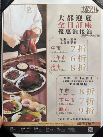 好耐冇去过大都烤鸭,今日晏昼同老婆两个人食lunch,老婆想食片皮鸭,见到有个二人餐$328,仲有好多款菜式俾你选择,追加片皮鸭仲有优惠,二话不说,就点咗呢个餐再加半只片皮鸭,片皮鸭有水准好味,包鸭𠮶层饼,好薄,老婆食到舔舔脷😋,我就钟意食黑醋骨,黄鱼羹,老婆钟意食辣,点左宫保鸡丁俾佢,不得不提下呢度嘅灌汤小笼包👍正,超好味,小弟推介(小龙包,片皮鸭,黑醋骨,宫保鸡丁)…查看更多
