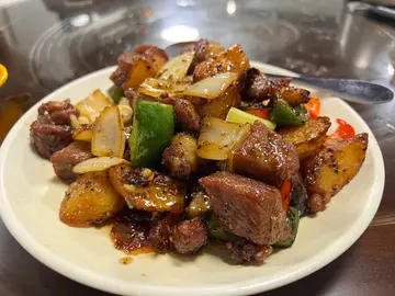 上次黎食系秋天个阵,一排无食而家盛夏有室内位置太好啦🔸韮菜花炒咸肉韮菜花清脆爽嫩,散发出清香的味道,咸肉煎到金黄肥瘦相间肉质鲜嫩带焦香,韮菜花吸收了咸肉的鲜味,咸肉也沾染了韮菜花的清香相得益彰🔸蒜蓉炒生菜新鲜的生菜叶子炒完仲保留到清脆爽口,蒜香四溢加上浓郁肉碎让人食欲大增,简简单单好送饭🔸蜜椒薯仔牛柳粒一上枱色泽诱人香气浓郁,牛柳粒肉质鲜嫩多汁份量慷慨,薯仔粒外层金黄酥脆内里软糯香甜,加入蜂蜜及各式辣椒更添甜香同微辣,口感调味层次感丰富