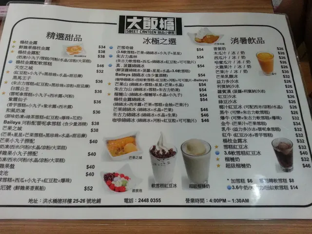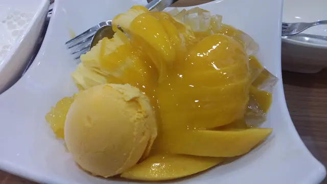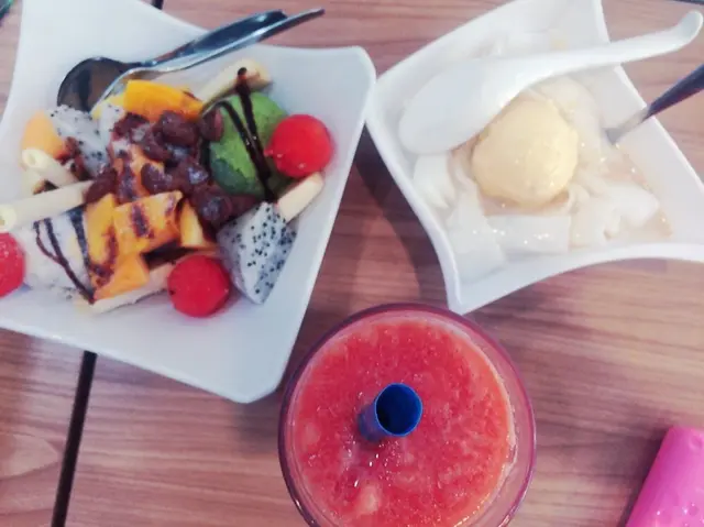 朋友話這間甜店好出名, 其實我都未聽過的, 今日有機會來試下, 間舖一點也唔起眼的, 係要特登來才會發現呀. 唔算大的, 十張枱左右吧. 餐牌都好吸引, 好多圖案的, 選擇都十分之多, 對我呢個選擇有困難的人, 實在有排揀呀.黑馬王子, 朱古力雪糕+紅豆粒+黑珍珠+涼粉+甜忌廉, 賣相十分之吸引, 好足料呀, 每樣嘢都有, 同埋好夠凍, 唔會好甜的, 朋友話好味.Baileys河粉配雲呢拿雪糕 (含少量酒精), 賣相都好靚, 可可脆粒, 河粉及雲呢拿好多份量, 不過Baileys的味道唔出, 冇咩味, 食唔出. 但整體都好味的, 河粉係蒟蒻做的. 都好滑身的.楊枝金露奶凍, 這個芒果楊枝金露奶凍, 賣相都好似好正咁, 芒果樣子好甜咁. 事實亦如是. 朋友話好甜, 又夠凍, 好味的. 同埋好多芒果粒, 西米呀, 奶凍都好大個. 夠滑身.和奶凍, 原味奶凍+綠茶雪糕+紅豆粒+爆珠+花奶, 這個都好靚, 用碟上的, 有一球綠茶雪糕, 好多紅豆, 仲有白色的爆珠, 個樣好靚, 奶凍夠晒白, 朋友話好味的配撘呀. 份量都唔少架.鐵達尼號, 鮮雜果香蕉船, 好多生果, 有三個雪糕球架, 朱古力, 芒果及雲呢拿呀, 仲有兩條朱古力蛋卷, 生果有西瓜, 菠蘿, 哈蜜瓜, 木瓜等等. 十分豐富, 又吸引, 小朋友最開心又鍾意.榴槤山, 綿綿冰+榴槤球+水晶+小丸子, 這個好大份呀, 榴槤肉的球, 冰冰, 好重榴槤味道, 朋友話好好味, 好香的, 一個人根本冇可能食晒, 好多又好好凍呀. 仲有些水晶及爆珠都好好味的. 我的芒果山, 綿綿冰+雪糕+星星+芒果+水晶, 又係勁大份量, 賣相十分之吸引, 好凍, 芒果雪糕好好味, 又香又唔會好甜, 芒果有半個咁多呀, 綿綿冰好多, 加埋d芒果冰好正, 仲有水晶. 好好味, 不過太凍及太多, 都食唔晒, 千祈唔好一個人叫一份.…查看更多