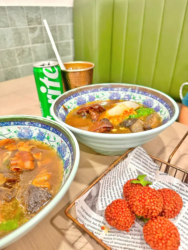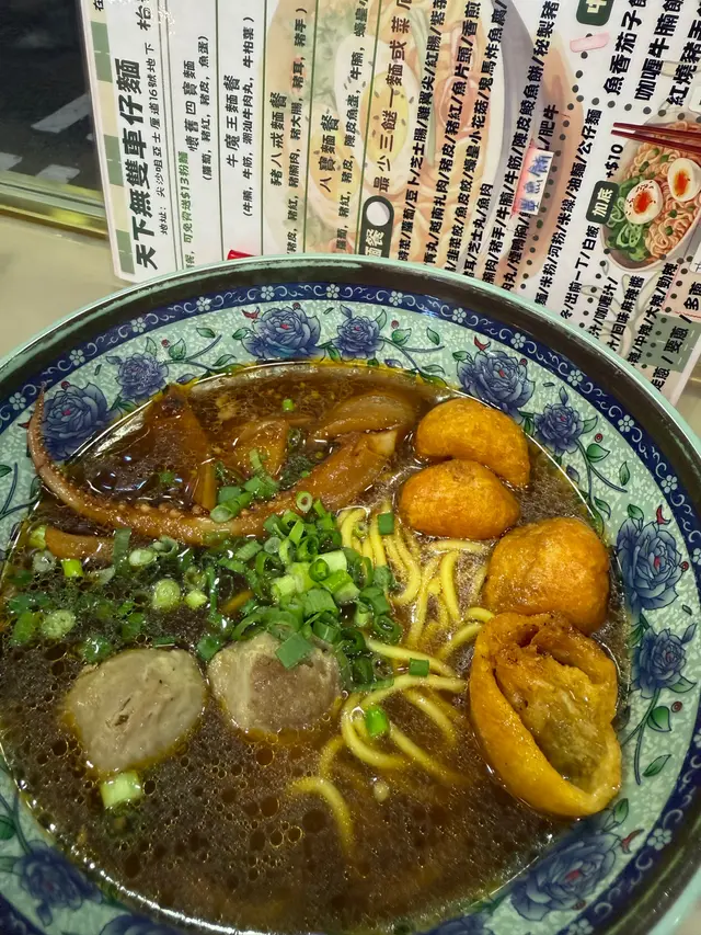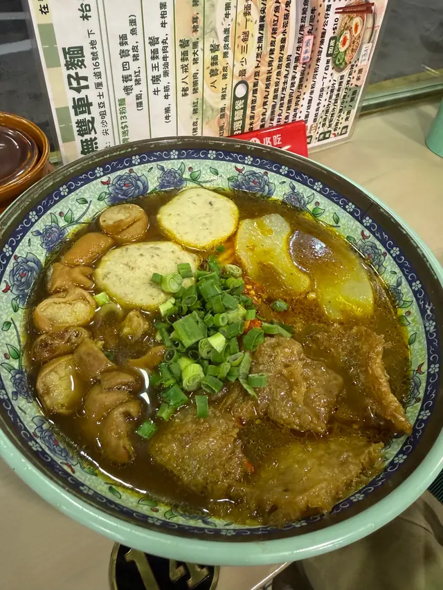 尖沙咀亞士厘道「天下無雙」一入門就感受到濃厚的港式氛圍,環境ok gei,價錢合理,每一樣嘢都係大家好熟悉嘅美食🥰令人倍感親切。樣樣都嘗試😃回憶返晒嚟。牛魔王麵餐這碗麵簡直是牛肉愛好者favourite!牛腩軟嫩,牛筋彈牙,牛栢業的鮮味,再加埋油麵,更是令人讚不絕口,牛丸ok,整體湯底濃郁。有水準嘅車仔麵。懷舊4寶麵蘿蔔清甜,豬紅香滑與豬皮入味。搭配讓人完美,陳皮魚蛋勁正,配搭完美,好食到令人停唔到口!生菜魚肉生菜魚肉讓我瞬間回到童年。就係嗰種街小店魚肉生菜,湯底配有麻油😍就係嗰種風味👍🏻👍🏻👍🏻完全做到全隻炸雞翼全隻炸雞翼而家好難食到😝炸雞翼外脆內嫩,醃製得恰到好處,咬下去的那一刻,香氣四溢,讓人忍不住多點幾隻!飲品咸檸七&凍檸茶當然少不了。清涼解渴;車仔麵好伴侶❤️讓人心情愉悅。餐廳仲有好多唔同嘅地道選擇一定會再嚟,亦都一定推介,所有嘢都好有水準必食必試👍🏻👍🏻👍🏻整體來說,「天下無雙」的餐點不僅味道出色,份量也頗足,絕對值得一試!如果你在尖沙咀附近,不妨來這裡享受一頓美味的港式餐!…查看更多