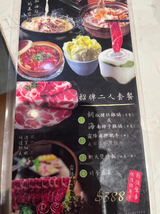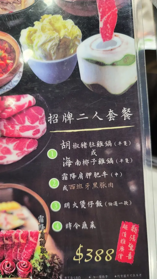 想食象拔蚌又想打邊爐? 呢間足料又抵食的椰子雞煲就岩你啦! 🍲 我哋叫咗一個 $1480 嘅極品4人餐套餐,分量超足!當中的 海南椰子雞湯底 用榔子水煮,愈煮愈濃,湯底清甜無比,雞肉滑嫩,食完真係令人心滿意足❤️🦪 新鮮到爆嘅原條象拔蚌刺身,真係必食!如果你覺得生味重,隨便煮一分鐘,輕鬆去腥,味道絕對好好食!👌🥩 接下來係 霜降手切頸脊肥牛,肉質紋理超美,油花分佈均勻,入口即化!而我們特別鐘意美國肥牛,肉質鮮嫩,味道極佳!我地點了幾次美國肥牛🍖💖🍤 唔好錯過我哋的 $48 脆炸響鈴卷!外脆內嫩,口感令人驚喜!仲有 $78 泰式墨魚餅,咬下去彈牙又有嚼勁,味道勁正😋店內仲有其他常見配料,各式蔬菜、手工類和火鍋配料,雖然不是自助形式,錢包很空虛,但是食得好滿足😋👌…查看更多