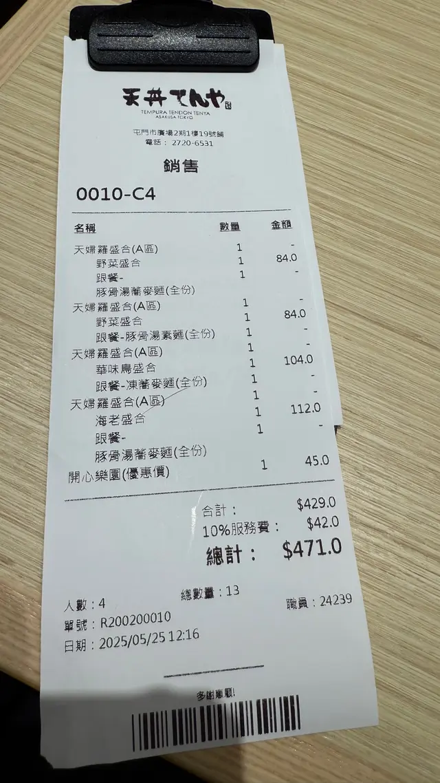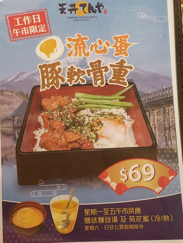 天丼 (屯门) 网址: https://s.openrice.com/QrLS0fy45W0 地址: 香港屯門屯隆街3號屯門市廣場2期1樓19號舖 电话: +852 27206531