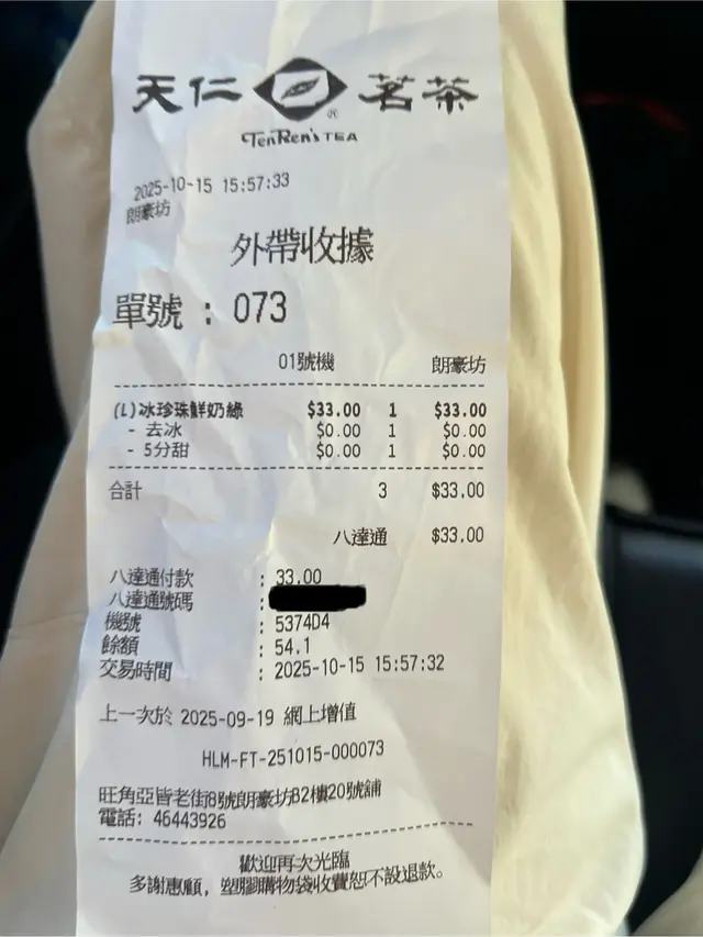 天仁茗茶 (旺角) 网址: https://s.openrice.com/QrLS0XKWF00 地址: 香港旺角亞皆老街8號朗豪坊B2樓20號舖 电话: +852 46443926