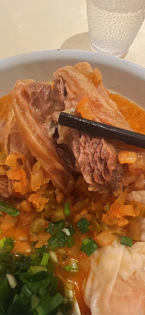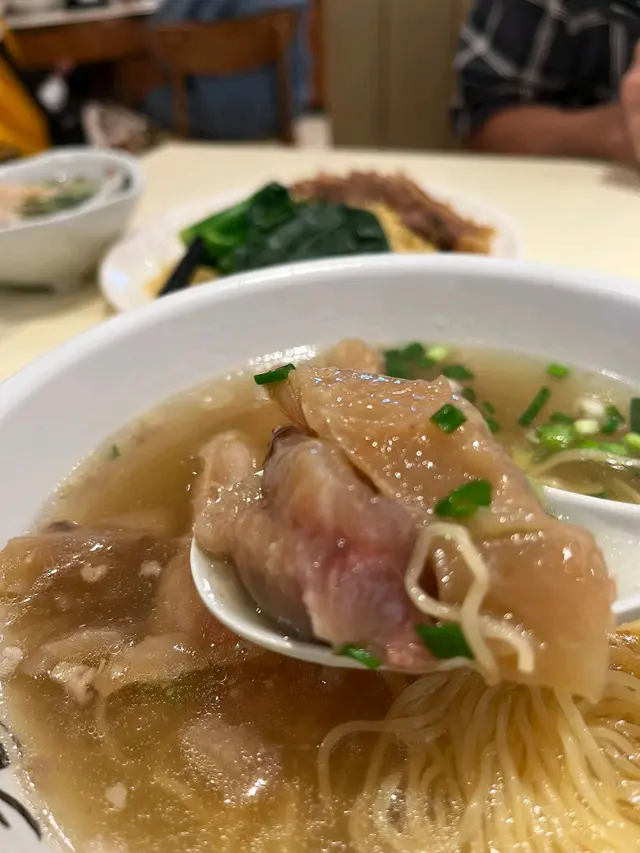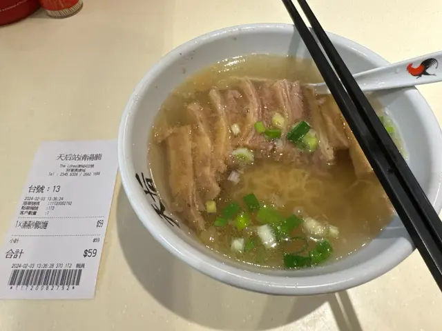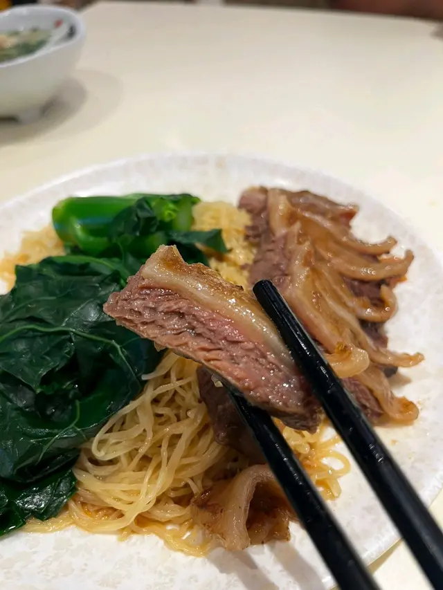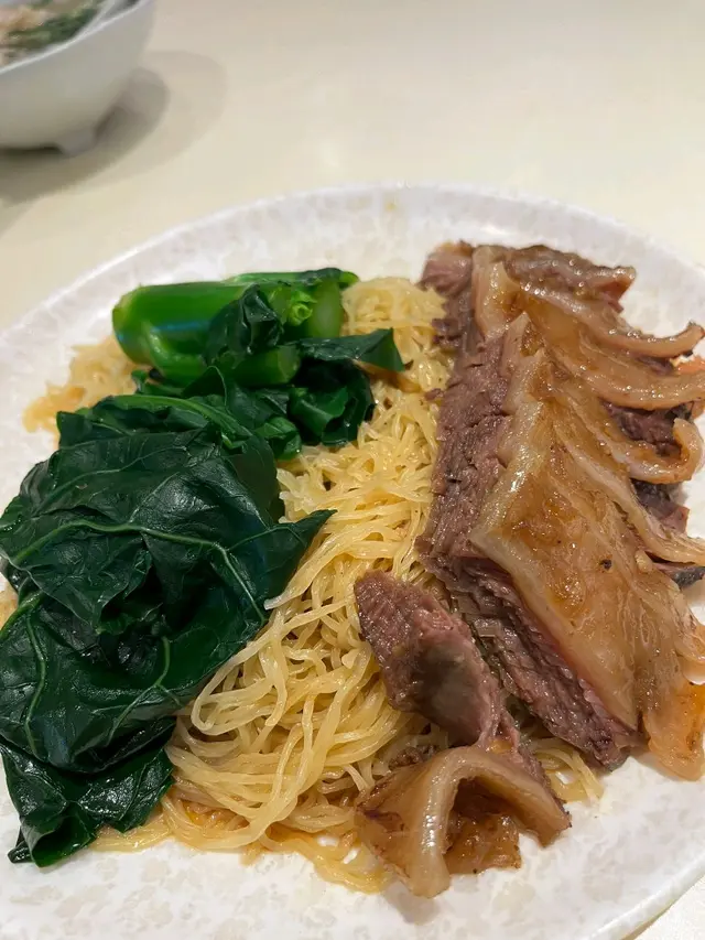 見到下午茶時段$42就有清湯牛腩米線,價錢親民,望望menu幾多選擇,有興趣一試。快餐格局一派,落單快,適合趕時間或者附近街坊醫肚。服務簡單直接,不過效率夠快。清湯牛腩米線端上枱就聞到牛香同蔥花味,碗面簡單一片幾大舊牛腩,配上白滑米線,灑下蔥花加分點綴。湯底飲落清甜沒味精口渴感,牛骨味突出,唔會太油膩。牛腩滷得入味,纖維分明,但仍保有咬口(唔會鬆到化晒,但亦唔過柴),部分帶少少筋,算有驚喜。米線偏向港式出品,煙韌度中上,掛湯力OK。蔥花落得夠多,提升鮮味。咁啱聽到隔籬喺茶餐完結之前啱啱坐低,職員即刻好熱心咁快手落單,幫食客享受到優惠,人情味可見一斑!…查看更多
