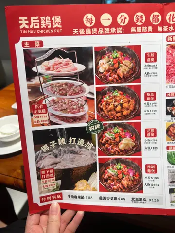 好耐无系香港食过鸡煲啦,今次同时间食左鸡煲+椰子鸡🐥再打埋边炉真系好满足😳呢到既招牌鸡煲好惹味,麻香味足够!但系我更推荐佢地既椰子鸡🙈真系落足料 每煲用足三只椰子🥥做汤底 系我食过最甜既椰子鸡!我同朋友系成煲汤饮哂先加水打边炉😂😂😂而且佢既鸡都好滑,好甜,基本上系唔需要蘸调味料咁🤍‣ 牛小扒 / 脆脆鱼片打边炉既牛小扒都好推荐!好爽而且重肉味,食材高质!‣ 蒜蓉鲍鱼 $228 蒜蓉鲍鱼好大粒,平均只系$38只😛好抵食呀!加埋上面满满既蒜一系好满足手工面都好推荐~烟烟韧韧既面质‣ 椰子鸡煲(一只) $328‣ 秘制鸡煲(小份) $188