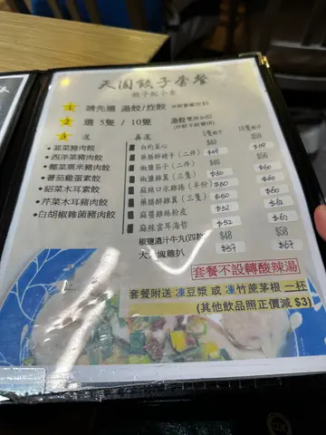 土瓜环天园饺子嘅分店!饺子铺头嚟讲 天园都算比较出名🥟总店系土瓜环 之后系旺角同观塘都开咗分店试完观塘店我觉得好似土瓜环总店系好食啲🤏🏻🤏🏻我最钟意佢地啲食物好有自家制嘅味道食完唔系觉得好难消化 或者好重口味要即刻饮水佢地啲饺子我唔可以话超好食🙈因为佢调味比较简洁 亦无加到动物脂肪入去做爆汁效果但系食落就似屋企人亲手包嘅饺子咁💕💕💕虽然铺头名就叫饺子 但佢地menu其实都几多元化‼️小食方面好多选择有凉拌类型 都有香口炸物 仲有酸辣汤𠻹♨️叫面/饺子都可以加钱转酸辣汤酸辣汤啖啖都系唔同材料食落好C服~ 仲可以加配自家制嘅竹席茅根水✅