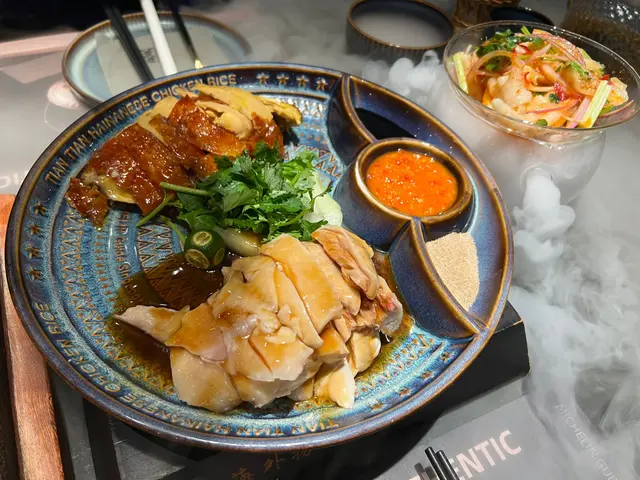 尖沙咀必食✨天天海南雞飯|米芝蓮推介星級新加坡菜!雞飯控必衝!尖沙咀圓方的天天海南雞飯真係有排比,新加坡米芝蓮推介名店集合!😍呢度環境超級chill~無論係同朋友聚餐定商務會議都啱晒,舒服到唔想走!天天海南雞飯係國際知名品牌👏 連星級廚師都話sooo good,雞肉鮮嫩,配埋香滑雞油飯,一試就知咩係米芝蓮級數。最正係有啲創新口味,完全唔悶!真係要試勻成個餐!星洲甄選二人餐 $538(星期一至四限定):- 新加坡檸檬鳳爪:啖啖膠原,酸辣惹味,炆得超腍,每口都好爽口。- 海南沙律:用番石榴+士多啤梨,微甜清新,好refresh。- 火焰石燒豬頸肉:有齊咩炭燒香,必蘸醬汁,肉爽好juicy。- 海南雞拼燒雞:雙重口感,白雞滑嫩、燒雞外脆內嫩,醬汁香到爆!用海南雞油飯邊食邊回味,米粒滿滿雞油香,每口都好想encore。- 蒜香西蘭花苗:翠綠爽脆,超有蒜香。- 甜品加碼:豆花美祿 & 豆花奶茶,最後一定要嚟返一杯啖啖滑!性價比高又夠水準,唔怪得咁多人讚!香港想食新加坡高質雞飯,記得嚟天天Plus,食物賣相色彩豐富,仲有乾冰效果,影相打卡一流!😋 想感受最地道新加坡味,雞油飯香到入心,約飯局就係呢度啦!…查看更多