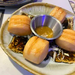 在新加坡系出名既米芝莲食店,第一次已经系几年前同爸爸新城市食,果次叫左个喇沙 成张枱咁大碗,今次同frd子过黎补生日饭,比机会佢发辨天天海南鸡 (中) $169无骨鸡处理得好干净(最怕食鸡有碎骨) 鸡皮肉偏白 皮薄而爽口,表面淋左一层清清薄薄的酱汁 随附三色酱料 沾晒3只酱一齐食更点睛鸡油饭(碗) $23饭粒粒分明 油香而不腻,饭底有调味 香料味亦会一口一口咀嚼时渗出黎,好钟意个油饭 净食饭都够满足猪肉骨茶小火锅 $159有猪/牛两款口味 拣左个传统猪骨,用小火锅上枱 有点气势吧😆汤底带有微微辣感同回甘 香浓惹味而唔重药材味,肋排大大旧 炖得够腍爽弹牙 唔会柴,仲有好多配料: 贡丸/豆卜/菇/卤蛋,另外有一碟米粉拼芽菜一齐上,料足丰富 比预期大份新加坡柠檬凤爪 $69比平时食既辣凤爪清新不带刺感 多左一份轻轻的南洋香味,做开胃小菜一流,上枱时有仙气出 睇见造型都开胃酥炸椒盐豆腐 $49口感似一口size的臭豆腐 外松脆内嫩嫩的,炸得透彻干爽唔会回渗油,加椒盐再沾少少带酸的酱汁一齐食 咸香回味又有食欲,小食来说是不错的选择龙眼冰 $29豆花恐龙美禄 $39新加坡菜必点的恐龙美禄 甜美浓郁朱古力的表面铺一层美禄粉,啜既时候mix滑滑豆花一齐入口 是甜品级美味*茶位@$10 / 收+1服务费*以蓝色为主调 半开放式店面*原来新加坡菜比想像的多元化…查看更多