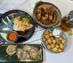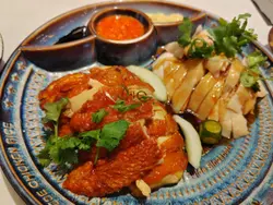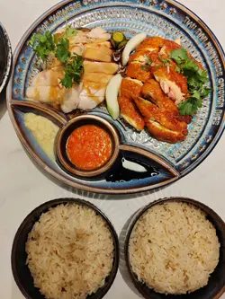在新加坡係出名既米芝蓮食店,第一次已經係幾年前同爸爸新城市食,果次叫左個喇沙 成張枱咁大碗,今次同frd子過黎補生日飯,比機會佢發辨天天海南雞 (中) $169無骨雞處理得好乾淨(最怕食雞有碎骨) 雞皮肉偏白 皮薄而爽口,表面淋左一層清清薄薄的醬汁 隨附三色醬料 沾晒3隻醬一齊食更點睛雞油飯(碗) $23飯粒粒分明 油香而不膩,飯底有調味 香料味亦會一口一口咀嚼時滲出黎,好鐘意個油飯 淨食飯都夠滿足豬肉骨茶小火鍋 $159有豬/牛兩款口味 揀左個傳統豬骨,用小火鍋上枱 有點氣勢吧😆湯底帶有微微辣感同回甘 香濃惹味而唔重藥材味,肋排大大舊 燉得夠腍爽彈牙 唔會柴,仲有好多配料: 貢丸/豆卜/菇/滷蛋,另外有一碟米粉拼芽菜一齊上,料足豐富 比預期大份新加坡檸檬鳳爪 $69比平時食既辣鳳爪清新不帶刺感 多左一份輕輕的南洋香味,做開胃小菜一流,上枱時有仙氣出 睇見造型都開胃酥炸椒鹽豆腐 $49口感似一口size的臭豆腐 外鬆脆內嫩嫩的,炸得透徹乾爽唔會回滲油,加椒鹽再沾少少帶酸的醬汁一齊食 咸香回味又有食慾,小食來說是不錯的選擇龍眼冰 $29豆花恐龍美祿 $39新加坡菜必點的恐龍美祿 甜美濃郁朱古力的表面鋪一層美祿粉,啜既時候mix滑滑豆花一齊入口 是甜品級美味*茶位@$10 / 收+1服務費*以藍色為主調 半開放式店面*原來新加坡菜比想像的多元化…查看更多