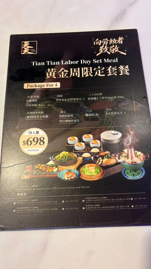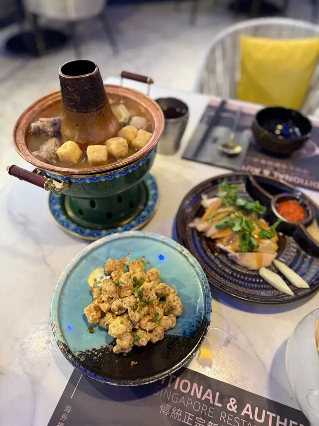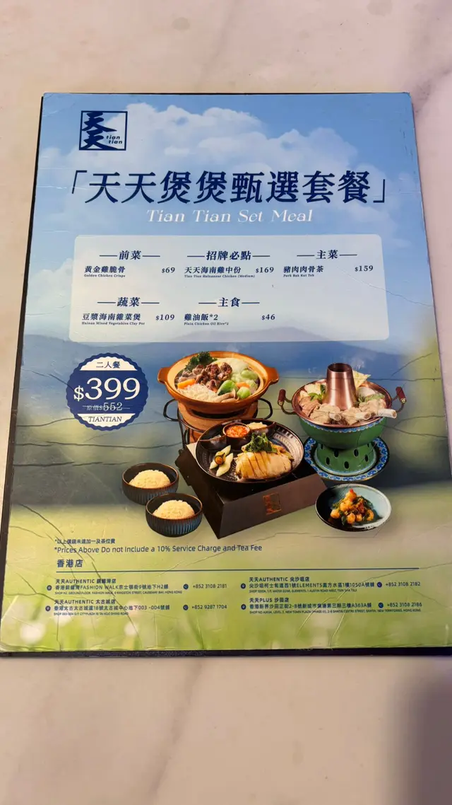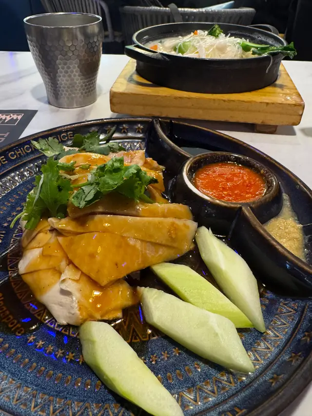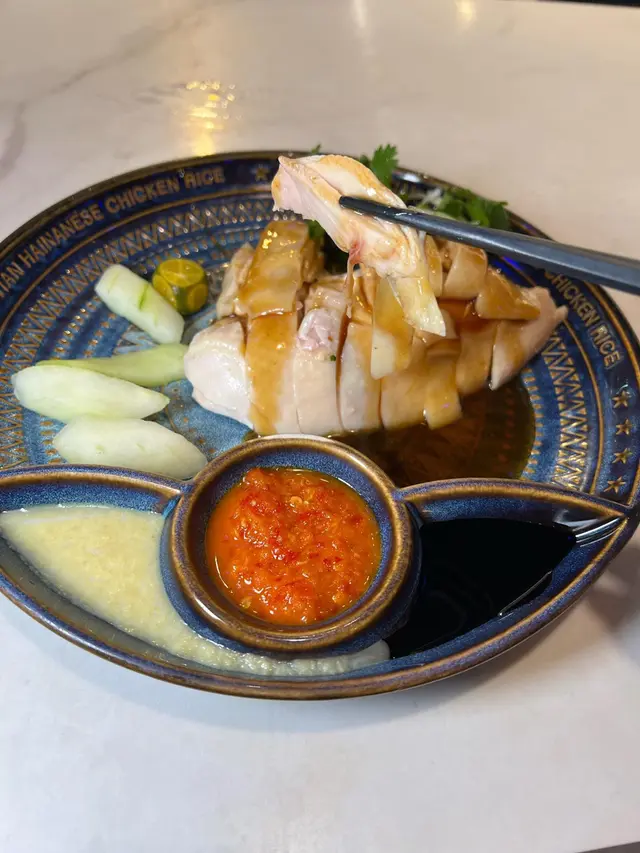 今晚跟爸爸慕名而來這間位於沙田店的天天海南雞!這間餐廳是新加坡的過江龍!最有名吃海南雞!及其他一些新加坡地道的菜式!看過餐牌有數款不同的套餐可以揀選!今晚點了這客套餐相當抵食,有小吃、肉骨茶、雜菜煲、還有最出名的天天海南雞!黃金雞脆骨,金黃香脆!吃起來還有鹹蛋黃香氣!而且脆卜卜的,相當好咬口!超惹味的一道小食。天天海南雞,非常出色!無骨的海南雞件啖啖肉,肉質又嫩又滑,而且還有三款秘製醬汁,甜豉油、薑蓉和辣醬,每一款醬汁都各有特色及味道,配上雞件來吃,又有不同的味蕾!海南雞份量充足,大滿足!吃海南雞,當然少不了配上雞油飯!雞油飯又香,飯粒又軟綿綿!用來一同吃海南雞相當滋味!豬肉肉骨茶,相當美味及豐盛!用熱鍋盛着肉骨茶,一邊加熱着,慢慢飲,也不用怕會變凍!肉骨茶超足料,有棒棒豬骨,啖啖肉超級惹味!豆卜,超入味!還有冬菇、爽口彈牙豬肉丸!超足料超地道,值得一試!豆漿海南雞雜菜煲,這個菜煲非常濃郁,豆漿湯底清甜,而且還有滿滿的蔬菜,非常清新健康!仲有大量菇菌、紅蘿蔔、粉絲等等材料,非常豐富!…查看更多
