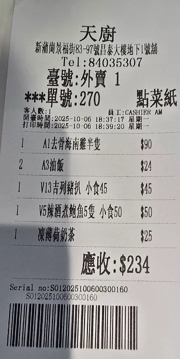 平时做节,一系屋企煮,再斩料加𩠌,再唔系食盆菜。不过今年中秋比较少人,所以落左新蒲岗买呢间海南鸡,买埋油饭,之后另外煮菜。原来大有来头,本身系彩颐花园一间小店,好食到系呢个位置开埋分店,正日都好多人堂食,或者好似我地咁,斩半只鸡返去。因为今次只打算煮菜,所以睇下餐牌,睇下除左鸡,仲有咩可以叫等紧嘅时候,发现呢度几好坐去骨海南鸡半只 $90 呢道海南鸡色泽鲜黄,用黄姜染色,非常吸睛。鸡肉嫩滑多汁,下方舖有清脆青瓜,卖相吸引又开胃。海南鸡配辣椒酱、黑酱油同姜蓉,味道层次丰富🥢。辣椒酱:辣椒桩碎加少少醋,酸辣好开胃黑酱油:甜味十足,不过比出面出品稀少少姜蓉:有姜香,有油滑,系香港人容易接受嘅味道油饭 $12*2=24 呢度油饭味道比较清淡,无太多香料,鸡油同椰香轻轻带味,配合干身粒粒分明嘅饭,同海南鸡好夹,唔会抢味👍。吉列猪扒 $45呢个吉列猪扒系典型港式口味,面包糠薄而均匀,炸粉轻脆,中间猪扒厚实又多汁,咬落好满足,点埋日式芝麻酱就更正啦!🍖 辣酒煮鲍鱼5只 $50 辣酒煮花螺就食得多啦,变成鲍鱼更容易食。呢道辣酒煮鲍鱼选用新鲜鲍鱼仔,肉质鲜嫩弹牙,配埋爽脆嘅青瓜同葱花,口感更丰富。加埋微辣嘅辣酒酱汁,去腥又开胃,味道层次丰富有新意!🔥冻薄荷绿茶 $20(奶茶系阿姐入错单)呢杯冻薄荷绿茶,绿茶配薄荷糖浆,好清新又有啲苦涩,真系提神解腻好选择!🌿总数:$229…查看更多