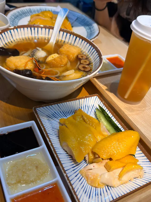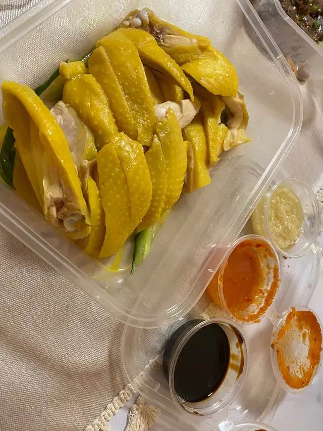 平時做節,一係屋企煮,再斬料加餸,再唔係食盆菜。不過今年中秋比較少人,所以落左新蒲崗買呢間海南雞,買埋油飯,之後另外煮菜。原來大有來頭,本身係彩頤花園一間小店,好食到係呢個位置開埋分店,正日都好多人堂食,或者好似我地咁,斬半隻雞返去。因為今次只打算煮菜,所以睇下餐牌,睇下除左雞,仲有咩可以叫等緊嘅時候,發現呢度幾好坐去骨海南雞半隻 $90 呢道海南雞色澤鮮黃,用黃薑染色,非常吸睛。雞肉嫩滑多汁,下方舖有清脆青瓜,賣相吸引又開胃。海南雞配辣椒醬、黑醬油同薑蓉,味道層次豐富🥢。辣椒醬:辣椒樁碎加少少醋,酸辣好開胃黑醬油:甜味十足,不過比出面出品稀少少薑蓉:有薑香,有油滑,係香港人容易接受嘅味道油飯 $12*2=24 呢度油飯味道比較清淡,無太多香料,雞油同椰香輕輕帶味,配合乾身粒粒分明嘅飯,同海南雞好夾,唔會搶味👍。吉列豬扒 $45呢個吉列豬扒係典型港式口味,麵包糠薄而均勻,炸粉輕脆,中間豬扒厚實又多汁,咬落好滿足,點埋日式芝麻醬就更正啦!🍖 辣酒煮鮑魚5隻 $50 辣酒煮花螺就食得多啦,變成鮑魚更容易食。呢道辣酒煮鮑魚選用新鮮鮑魚仔,肉質鮮嫩彈牙,配埋爽脆嘅青瓜同蔥花,口感更豐富。加埋微辣嘅辣酒醬汁,去腥又開胃,味道層次豐富有新意!🔥凍薄荷綠茶 $20(奶茶係阿姐入錯單)呢杯凍薄荷綠茶,綠茶配薄荷糖漿,好清新又有啲苦澀,真係提神解膩好選擇!🌿總數:$229…查看更多